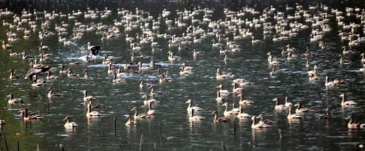 নওগাঁর ধামইরহাটে শীতকালের তীব্রতা বৃদ্ধির সাথে সাথে আলতাদীঘি জাতীয় উদ্যানের চারপাশে ঝাঁকে ঝাঁকে ছুটে আসছে অতিথি পাখি। অতিথি পাখির কোলাহলে যেন প্রকৃতির অপরূপ সাজে সেজেছে আলতাদীঘি জাতীয় উদ্যান। চারিদিকে শাল গাছের ঝরা শুকনো পাতার সন সন শব্দ আর পাখির কিচিরমিচির শব্দে জাতীয় উদ্যানে আসা দর্শনার্থীদের মন কেড়েছে। এমন মনমুগ্ধকর পরিবেশে একবার ঘুরে এলে মনের ভেতরে তৈরি হবে এক স্বপ্নের বসবাস। নিমিষেই মনের মধ্যে জমে থাকা দুঃখ বেদনা ভুলিয়ে ফিরে আসবেন নতুন এক জীবনে। বুধবার (২১ ডিসেম্বর ২১) দেখাগেছে শীতের কুয়াশা ভেজা ভোরের পদ্ম পাতার উপরে বসে থাকা সারি সারি পরিযায়ী পাখি। দেশের গণ্ডি পেরিয়ে বিভিন্ন দেশ থেকে দলে দলে এসে ঝাঁক বেঁধেছে দিঘীজুরে। এদের মধ্যে উল্লেখযোগ্য-বালিহাঁস,চিনা হাঁস, রাজ সরালি,পাতি সরালি, রাজহাঁস, মান্দারিন হাঁস, গোলাপি রাজহাঁস,ঝুটি হাঁস,চকাচকি, বুনোহাঁস,ডুবোরী,কালো হাঁস,লালশির,জলপিপি,নীলশীর,হরিয়াল, মানিকজোড়, গাংচিল, কাদাখোচা, রামঘুঘ সহ বিভিন্ন প্রজাতির অতিথি পাখি।নওগাঁ জেলার পর্যটন কেন্দ্র গুলোর মধ্যে অন্যতম পর্যটন কেন্দ্র হিসেবে ইতিমধ্যে পরিচিতি লাভ করেছে আলতাদীঘি জাতীয় উদ্যান। তথ্য অনুসন্ধানে জানা গেছে রাজশাহী সামাজিক বন বিভাগের আওতায় নওগাঁ জেলার ধামইরহাট উপজেলায় পাইকবান্দা রেঞ্জের অধীনে ধামইরহাট বিটে অবস্থিত। ২০১১ সালে পবম-বন-শা-২-৪৮-২০১০-৩৭৮ নাম্বার প্রজ্ঞাপন মূলে “আলতাদিঘী জাতীয় উদ্যান” ঘোষণা করা হয়। নওগাঁ জেলা শহর থেকে প্রায় ৬১কি:মি: উত্তরে ভারতীয় সীমান্তের কোল ঘেঁষে এবং জয়পুরহাট জেলা শহর থেকে ১৯কি:মি: পশ্চিমে এ জাতীয় উদ্যানের অবস্থান। নওগাঁ জেলার সর্ব বৃহৎ এই দীঘির মোট আয়তন ৫৫.৪৬ একর (পাড় সহ) যার দৈর্ঘ্য ১.২০ কি:মি: এবং প্রস্থ ০.২০ কি:মি:। দিঘীরপাড়ের আয়তন ২১ একরের মালিকানা বন বিভাগের এবং ৬.১৩ একর ১ নাম্বার খাস খতিয়ান ভুক্ত। উল্লেখ্য, শুধু আলতাদিঘী জলাশয়ের আয়তন ৪২.৮১ একর। দিঘিটির উত্তর- দক্ষিণ-পূর্ব ও পশ্চিম পাড়ে রয়েছে, বিভিন্ন প্রজাতির গাছের অপরূপ বাগান। অপরদিকে দক্ষিণ-পশ্চিমে মইশর ও পশ্চিম পাশে দাদনপুরে রয়েছে প্রাকৃতিক শালবন। এছাড়াও জাতীয় উদ্যানের পাশের ১৭.৩৪ হেক্টর বনভূমিকে ২০১৬ সালের ৯ জুন তারিখে বাংলাদেশ বন অধিদপ্তর বিশেষ জীব বৈচিত্র্য সংরক্ষণ এলাকা হিসেবে ঘোষণা করে।