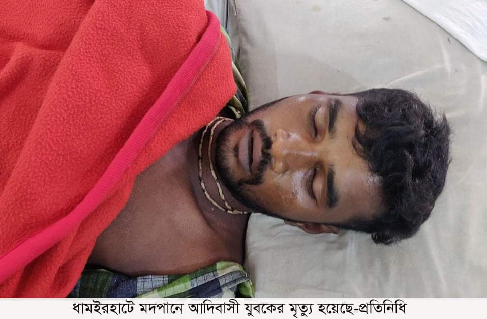 নওগাঁর ধামইরহাটে অতিরিক্ত মদপানে এক আদিবাসী যুবকের মৃত্যুর ঘটনা ঘটেছে। জানা গেছে,উপজেলার আলমপুর ইউনিয়নের বস্তাবর চৌঘাট তালপাড়া আদিবাসীপল্লীর ৫ যুবক গত বৃহস্পতিবার সন্ধ্যায় ভ্যানযোগে বাড়ী থেকে শারদীয় দূর্গা মন্ডপ দেখার জন্য উপজেলা সদরে আসে। এ সয়ম তারা দূর্গোৎসব উপলক্ষে চোলাই মদ পান করে। উপজেলা সদরের পুজা মন্ডপে কীর্তন শোনার পর ভোর ৪টার দিকে তারা ভ্যান যোগে বাড়ীতে যাওয়ার জন্য রওনা দেয়। পথে বীরগ্রাম চারমাথা মোড় নামকস্থানে ভ্যান উল্টে যায়। এতে নীতিশ পাহান (১৯) আহত হয়। শুক্রবার ভোর সকালে তাকে উপজেলা স্বাস্থ্য কমপ্লেক্সে ভর্তি করা হয়। চিকিৎসাধীন অবস্থায় সকাল ৮টায় সে মারা যায়। নীতিশ পাহান ওই গ্রামের জগেন পাহানের ছেলে। সে অবিবাহিত ছিল। এব্যাপারে উপজেলা স্বাস্থ্য কমপ্লেক্সের সহকারি সার্জন মোসা.আনজুমান আরা বলেন,অতিরিক্ত মদপানে ওই যুবক মারা গেছে।