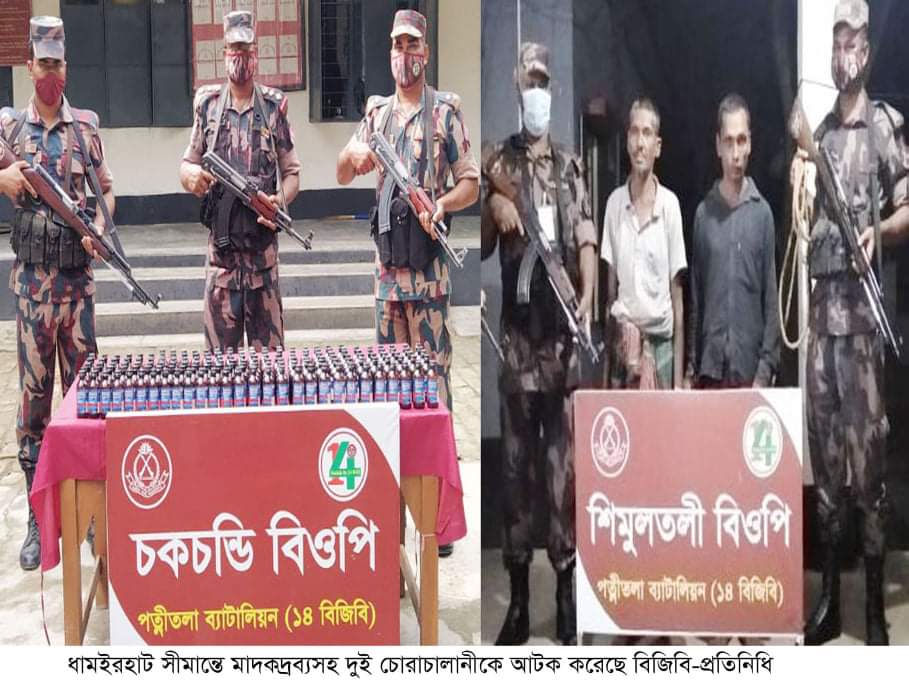 নওগাঁ জেলার ধামইরহাটে অবৈধভাবে ভারতে প্রবেশের চেষ্টাকালে দুই চোরাচালানীকে আটক করেছে শিমুলতলী বিজিপির টহলদল।