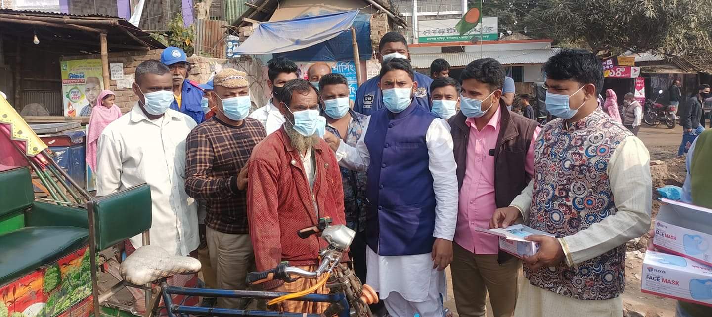 নতুন বছরের প্রথম বিধিনিষেধ বাস্তবায়নে মাঝিড়া ইউনিয়নে ম্যাস্ক বিতরন