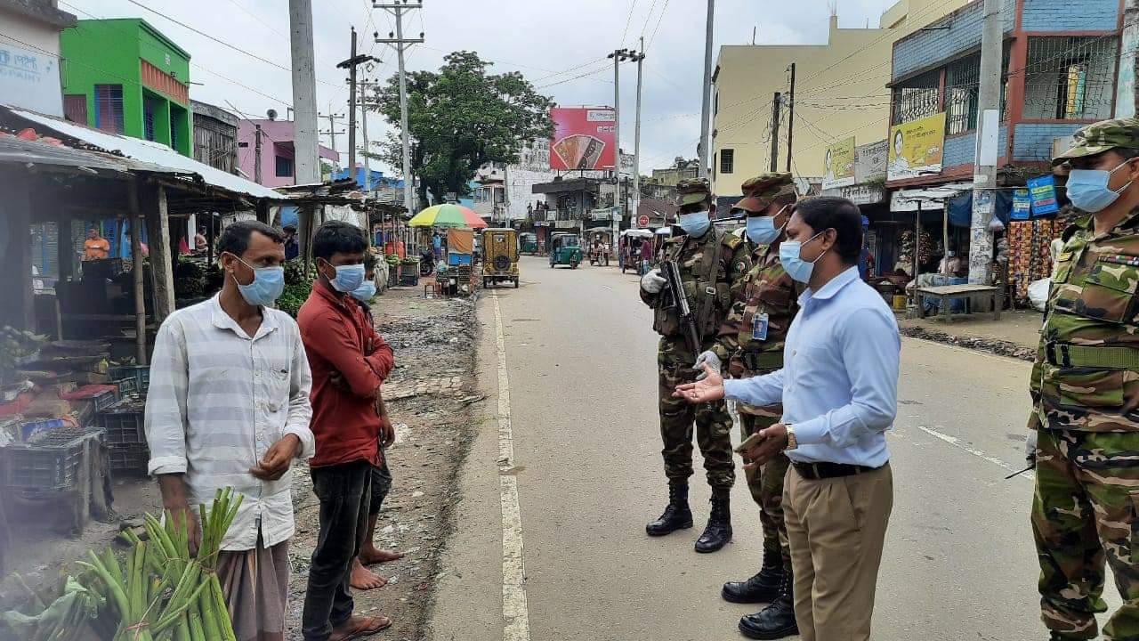 দেশে করোনার প্রকোপ বৃদ্ধি পেয়েছে। প্রতিদিনই ক্রমশ হারে বৃদ্ধি পাচ্ছে করোনা আক্রান্ত রোগীর সংখ্যা। আক্রান্তের সঙ্গে পাল্লা দিয়ে বাড়ছে মৃত্যুর সংখ্যা কিন্তু স্বাস্থ্যবিধি মানার বালাই নেই সাধারণ মানুষের মধ্যে। এ অবস্থায় করোনা সংক্রমন রোধের লক্ষে দেশে লকডাউন জারি করেছে সরকার। এবার ও সারাদেশের ন্যায় নবীগঞ্জে কঠোর লকডাউনে নবীগঞ্জ উপজেলায় সরকারি বিধি নিষেধ কার্যকর করতে উপজেলা প্রশাসন ও সেনাবাহিনীর টহল রয়েছে। এ সময় সরকারি বিধি নিষেধ অমান্য করে ব্যবসা প্রতিষ্ঠান খোলা রাখা ও মাস্ক পরিধান না করায় অর্থদন্ড- করা হয়েছে। আজ সোমবার (৩রা আগষ্ট) সকাল থেকে বিকেল ৪ টা পর্যন্ত নবীগঞ্জ উপজেলা সহকারী কমিশনার (ভূমি) ও এক্সিকিউটিভ ম্যাজিস্ট্রেট উত্তম কুমার দাশের নেতৃত্বে একদল সেনা সদস্য সহযোগিতা করেন। নবীগঞ্জ পৌর এলাকার,ইমামবাড়ি, বাংলাবাজার, আউশকান্দী, সৈয়দপুর বিভিন্ন বাজারে অভিযান পরিচালনা করা হয়। এ সময় সরকার নির্ধারিত কঠোর বিধিনিষেধ অমান্য করে ব্যবসা প্রতিষ্ঠান খোলা, অকারণে বাইরে ঘুরাফেরা করা এবং মাস্ক না পড়াসহ বিভিন্ন অপরাধে মোবাইল কোর্ট পরিচালনা করে দণ্ডবিধি ১৮৬০ এর ১৮৮,২৬৯ এবং সংক্রামক রোগ (প্রতিরোধ নিয়ন্ত্রণ ও নির্মুল) আইন ২০১৮ অনুযায়ী মোবাইল কোর্ট পরিচালনা করে ১২টি মামলা ১৪ হাজার টাকা জরিমানা করেন।