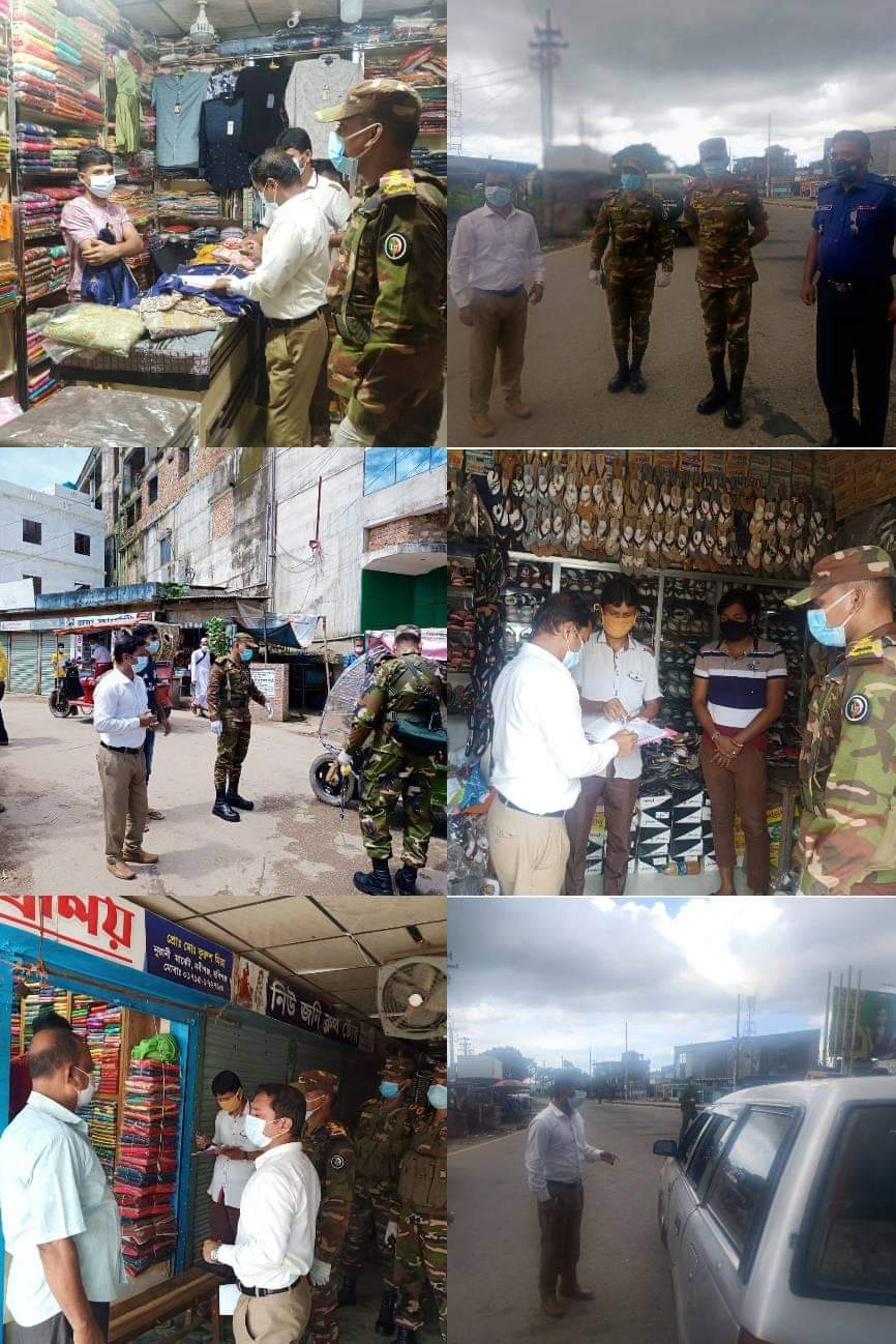 প্রতিদিনের ন্যায় মঙ্গলবার (২৭ জুলাই) নবীগঞ্জ উপজেলা প্রশাসনের উদ্যোগে উপজেলা সহকারী কমিশনার (ভূমি) ও এক্সিকিউটিভ ম্যাজিষ্ট্রেট উত্তম কুমার দাশের নেতৃত্বে ও বাংলাদেশ সেনাবাহিনীর একদল সদস্যের সহযোগিতায় সকাল থেকে বিকাল পর্যন্ত মোবাইল কোর্ট পরিচালনা অদ্য নবীগঞ্জ উপজেলার পৌর এলাকার, আউশকান্দি সহ বিভিন্ন বাজারে এ অভিযান করা হয়। সেনাবাহিনীর সহযোগিতায় সহকারী কমিশনার (ভূমি) ও এক্সিকিউটিভ ম্যাজিস্ট্রেট জনাব উত্তম কুমার দাশ দণ্ডবিধি ১৮৬০ এর ১৮৮,২৬৯ এবং সংক্রামক রোগ (প্রতিরোধ নিয়ন্ত্রণ ও নির্মুল) আইন ২০১৮ অনুযায়ী মোবাইল কোর্ট পরিচালনা করেন।