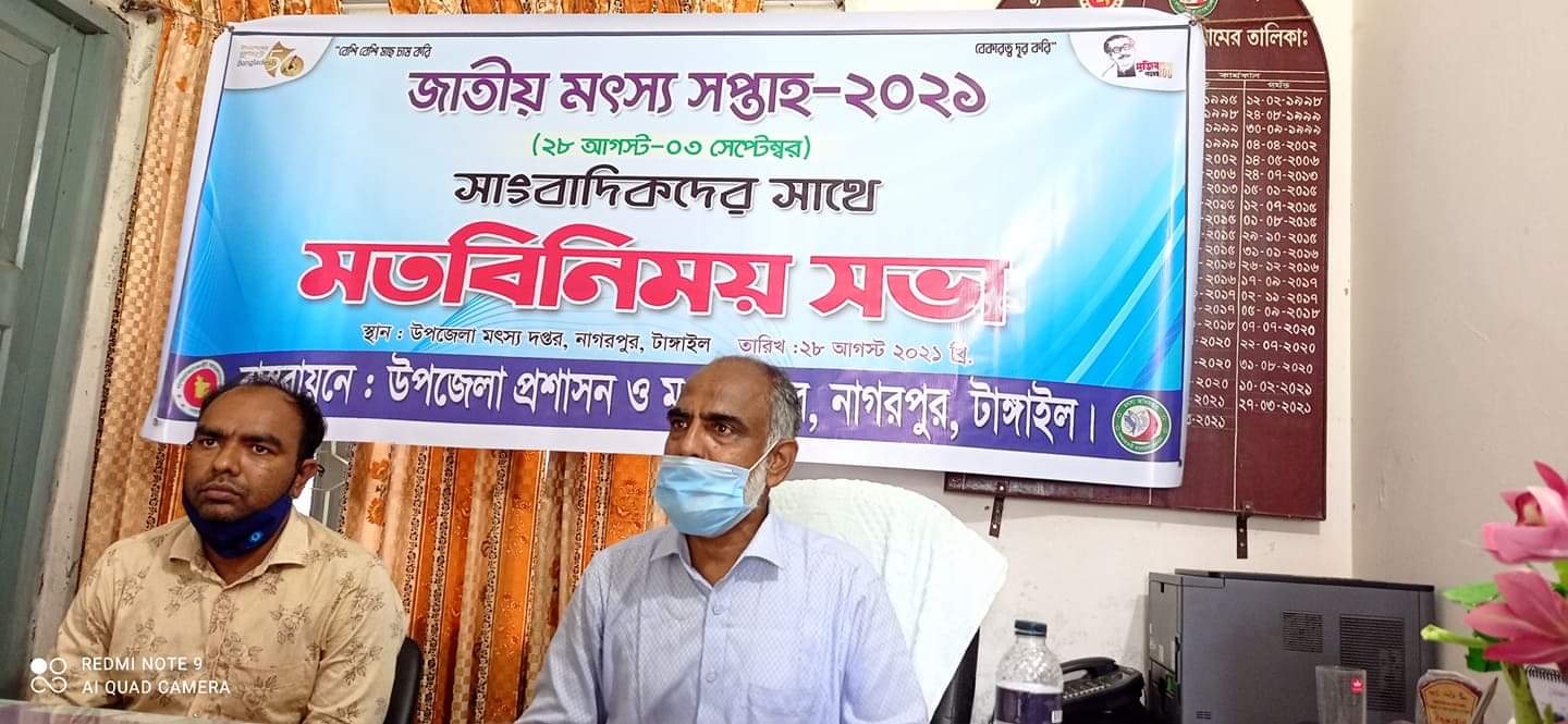 'বেশী বেশী মাছ চাষ করি, বেকারত্ব দূর করি' - এই প্রতিপাদ্যকে সামনে রেখে সারাদেশের ন্যায় টাংগাইলের নাগরপুরে জাতীয় মৎস্য সপ্তাহ ২০২১ উপলক্ষে সাংবাদিকদের সাথে এক মতবিনিময় সভা অনুষ্ঠিত হয়েছে।