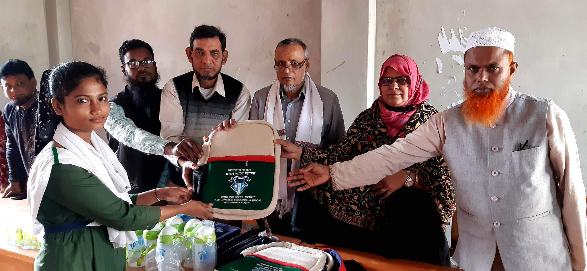 উপকরণের মধ্যে ছিলো দুর্নীতি দমন কমিশনের শ্লোগান, স্কুল ব্যাগ, ছাতা,জ্যামিতি বক্স, খাতা, কলম,পানির পট,হ্যান্ড ব্যাগ, টিফিন বক্স স্কেলসহ অন্যান্য সামগ্রী।