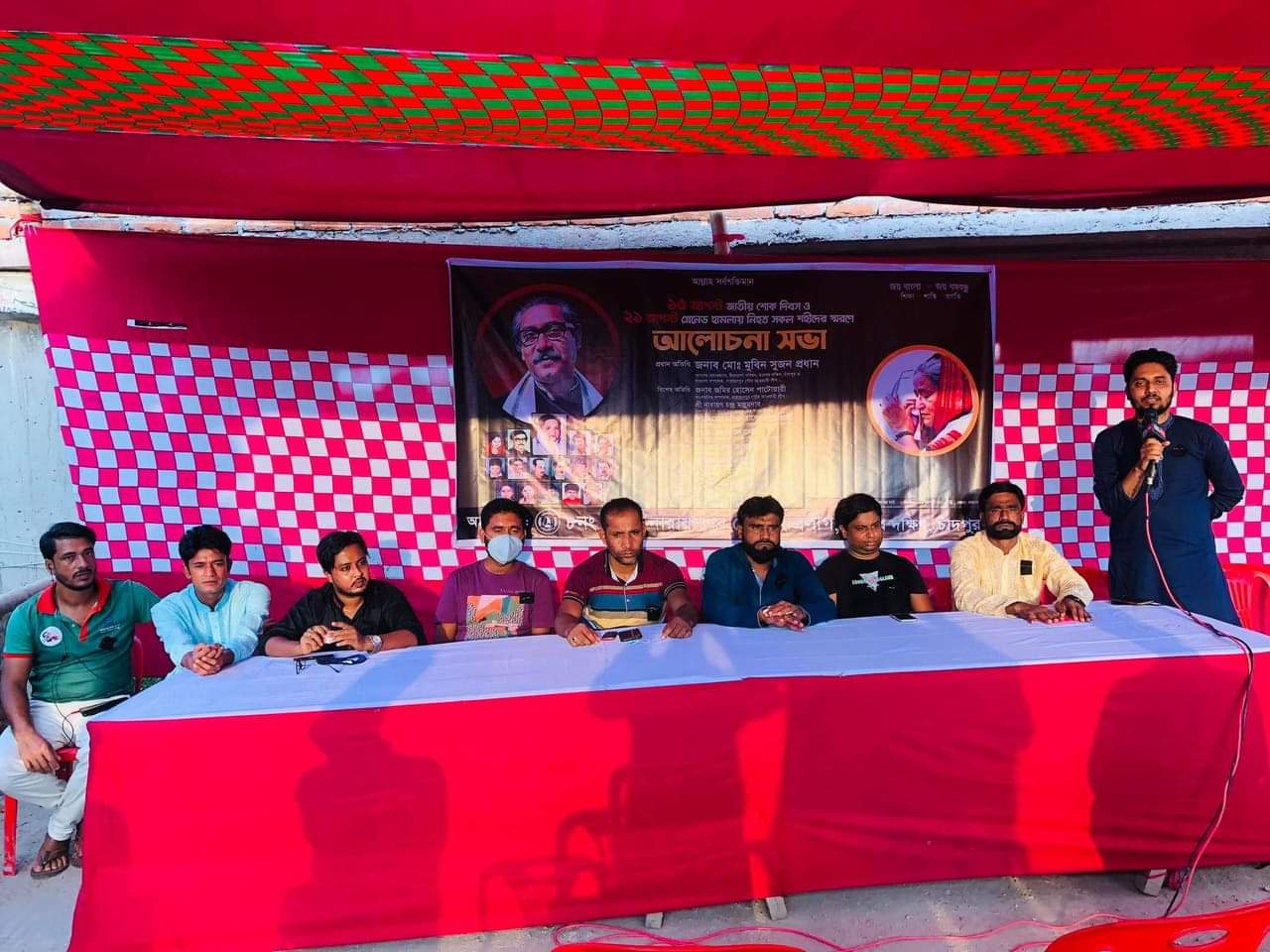 এ সময় বক্তারা বলেন, ১৯৭৫ সালে ১৫ই আগস্ট জাতির জনক বঙ্গবন্ধু শেখ মুজিবুর রহমানকে হত্যা ও ২০০৪ সালে তৎকালীন বিরোধী দলীয় নেত্রী বর্তমান প্রধানমন্ত্রী শেখ হাসিনাকে হত্যার উদ্দেশ্যে পরিকল্পিত গ্রেনেড হামলা একই সূত্রে গাঁথা। ১৯৭৫ সালে স্বাধীনতা ও দেশ বিরোধী ও বিপদগামী সেনা এবং কিছু বেসরকারী চক্র জাতির জনক বঙ্গবন্ধু শেখ মুজিবুর রহমানকে হত্যা করেছিল। তারা শুধু বঙ্গবন্ধুকে হত্যা করে শান্ত হয়নি। বঙ্গবন্ধুর পরিবারের সকল সদস্য এমনকি শিশু আন্তসত্ব নারীও বাদ যায়নি। বঙ্গবন্ধুর আত্মীয়-স্বজনকেও পরিবারকে একসাথে হত্যা করে। একই ভাবে ২০০৪ সালে শেখ হাসিনাকে হত্যা করে এবং বাংলাদেশ আওয়ামী লীগকে নেত্রী শূন্য করতে সন্ত্রাস বিরোধী সমাবেশে গ্রেনেডহামলা করা হয়েছে। বাংলাদেশ আওয়ামী লীগ নেতাকর্মীরা জননেত্রী শেখ হাসিনাকে মানবজাল তৈরি করে নিরাপদে গাড়িতে নিতে গেলে সেখানেও সন্ত্রাসীরা গুলি বর্ষণ করে হত্যা চেষ্ঠা করেছে। শেখ হাসিনার ব্যক্তিগত দেহ রক্ষী গুলিতে মৃত্যুবরণ করেন। মৃত্যু বরণ করেছে বাংলাদেশ আওয়ামী লীগের মহিলা সম্পাদক বেগম আইভীর রহমান সহ অসংখ্য নেতাকর্মী। এখনও অনেক নেতাকর্মীরা শরীরে বোমার স্পিটার নিয়ে বেঁচে আছে। সে শোককে শক্তিতে রুপান্তরিত করে এবং বঙ্গবন্ধুর স্বপ্নকে বাস্তবায়নের লক্ষ্যে বঙ্গবন্ধু কন্যা শেখ হাসিনা অক্লান্ত পরিশ্রমের মাধ্যমে দেশকে একটি উন্নয়নশীল দেশ হিসেবে বিশ্বের দরবারে তুলে ধরেছেন।