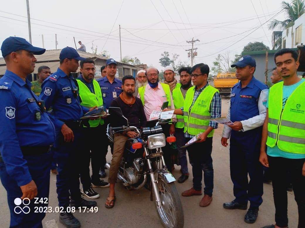 ৮-২-২৩ বুধবার বিকাল ৫ টায় ডুমুরিয়া শরাফপুর সড়কের গোডাউন মোড় এলাকায়,খুলনা জেলা ট্রাফিক পুলিশের সহযোগিতায় সড়ক দুর্ঘটনা রোধে, ট্রাফিক আইন সম্পর্কিত লিফলেট বিতরণের মাধ্যমে যাত্রী ও চালকদেরকে সচেতনত করা হয়।