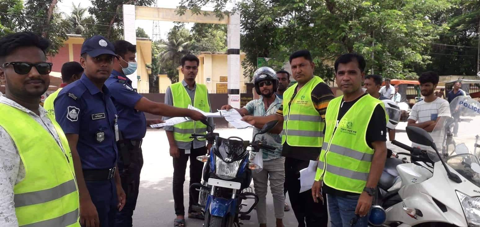 খুলনা ডুমুরিয়া -শরাফপুর ফিডার রোডে গোডাউন মোড়ে গতকাল (২জুলাই) শনিবার সকাল ১১ টায় ডুমুরিয়া -শরাফপুর ফিডার রোডে গোডাউন মোড়ে নিরাপদ সড়ক চাই ডুমুরিয়া উপজেলা শাখা সড়ক দুর্ঘটনা রোধে জনসচেতনতা সৃষ্টির লক্ষ্যে সড়ক আইন সম্মিলিত লিফলেট বিতরণ করেন। সহযোগিতায় ছিলেন খুলনা জেলা ট্রাফিক এবং ডুমুরিয়া থানা পুলিশ কর্মকর্তাবৃন্দ।এসময় সড়কে শৃঙ্খলা ফেরাতে অবৈধ যানবাহনের বিরুদ্ধে অভিযান পরিচালনা করেন