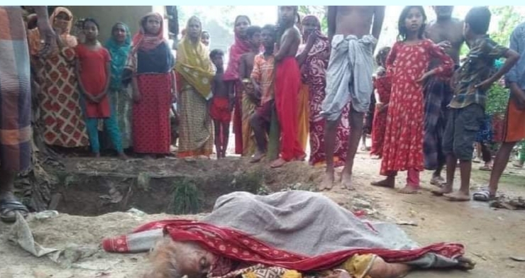 এলাকাবাসী জানান, মাদক সেবনের টাকা না দেয়ায় ধারালো দা দিয়ে কুপিয়ে হত্যা করেছে দাদী শেফাতন বেওয়া(৯০)কে। বেলা ১২টার দিকে নাতী মনজুর রহমান (২০) দাদীর নিকট টাকা চাইলে তিনি টাকা দিতে অস্বীকৃতি জানায়। এতেই ক্ষুব্ধ হয়ে মুন্জুর রহমান আনারস কাটার দা দিয়ে কুপিয়ে এবং গলা কেটে রক্তাক্ত করে। বৃদ্ধার চিৎকারে ছেলের বৌ রাহেলা দৌড়ে এলে ঘাতক মনজুর রহমান পালিয়ে যায়। এ সময় ঘটনাস্থলেই বৃদ্ধা শেফাতন বেওয়ার মৃত্যু হয়।