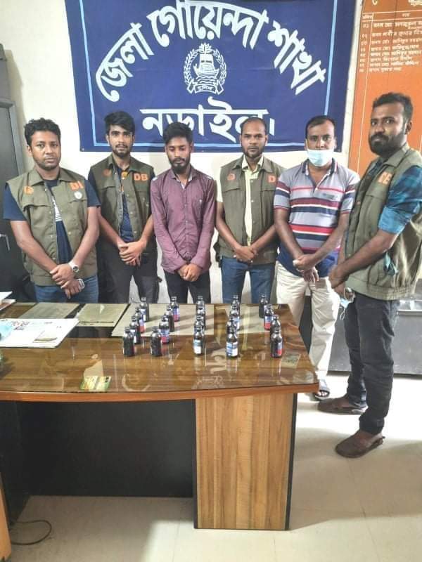 নড়াইলে নিজ বাড়ি থেকে ২০ বোতল ফেনসিডিলসহ এক মাদক ব্যাবসায়িকে আটক করেছে নড়াইল গোয়েন্দা পুলিশ (ডিবি)। আটক মাদক ব্যবসায়ী লোহগড়া উপজেলার নোয়াপাড়া মোঃ মনিরুজ্জামান শেখের ছেলে পল্লব শেখ।এস,আই সঞ্জীব ঘোষ জানান,পুলিশ সুপার প্রবীর কুমার রায় পিপিএম (বার) এর নির্দেশক্রমে অফিসার ইনচার্জ জেলা গোয়েন্দা শাখার তত্ত্বাবধানে গোঁপন সংবাদের ভিত্তিত্বে আমি এস,আই সঞ্জীব ঘোষ,এ এসআই শরিফুল ইসলাম,এ এসআই আবুল কালাম,কনেষ্টোবল সালমান,রাজু ঢালীসহ সঙ্গীয় ফোর্স নিয়ে গতকাল(২০সেপ্টেম্বর) সোমবার সকালে লোহাগড়া উপজেলার লক্ষিপাশা ইউনিয়নের নোয়াপাড়া গ্রামের মো:মনিরুজ্জামান শেখ এর ছেলে মোঃপল্লব শেখকে ২০ বোতল ভারতীয় ফেনসিডিলসহ নিজ বাড়ি থেকে হাতেনাতে গ্রেফতার করি এবং লোহাগাড়া থানায় হস্তান্তর করা হয়েছে।এস,আই সঞ্জীব ঘোষ আরো বলেন,আমাদের পুলিশ সুপার প্রবীর কুমার রায় পিপিএম (বার) স্যারের নির্দেশ নড়াইল জেলা থেকে মাদকের শিকড়সহ উফড়ে ফেলতে হবে তারই নির্দেশে নড়াইল জেলা পুলিশসহ ডিবি পুলিশের সকল টিম দিন রাত অক্লান্ত পরিশ্রম করে নড়াইল জেলার বিভিন্ন যায়গা থেকে বিভিন্ন ধরনের মাদক ব্যবসায়ীদের আটক করে জেল হাজতে পেরণ করছি।নড়াইল জেলা পুলিশকে সকল ধরনের তথ্যদিয়ে সহযোগীতা করুন,নড়াইল জেলা বাসিকে মাদকের ভয়াবহতা থেকে রক্ষা করুন বলেও জানান।আসামির বিরুদ্ধে নিয়মিত মাদক মামলা প্রক্রিয়াধীন।
