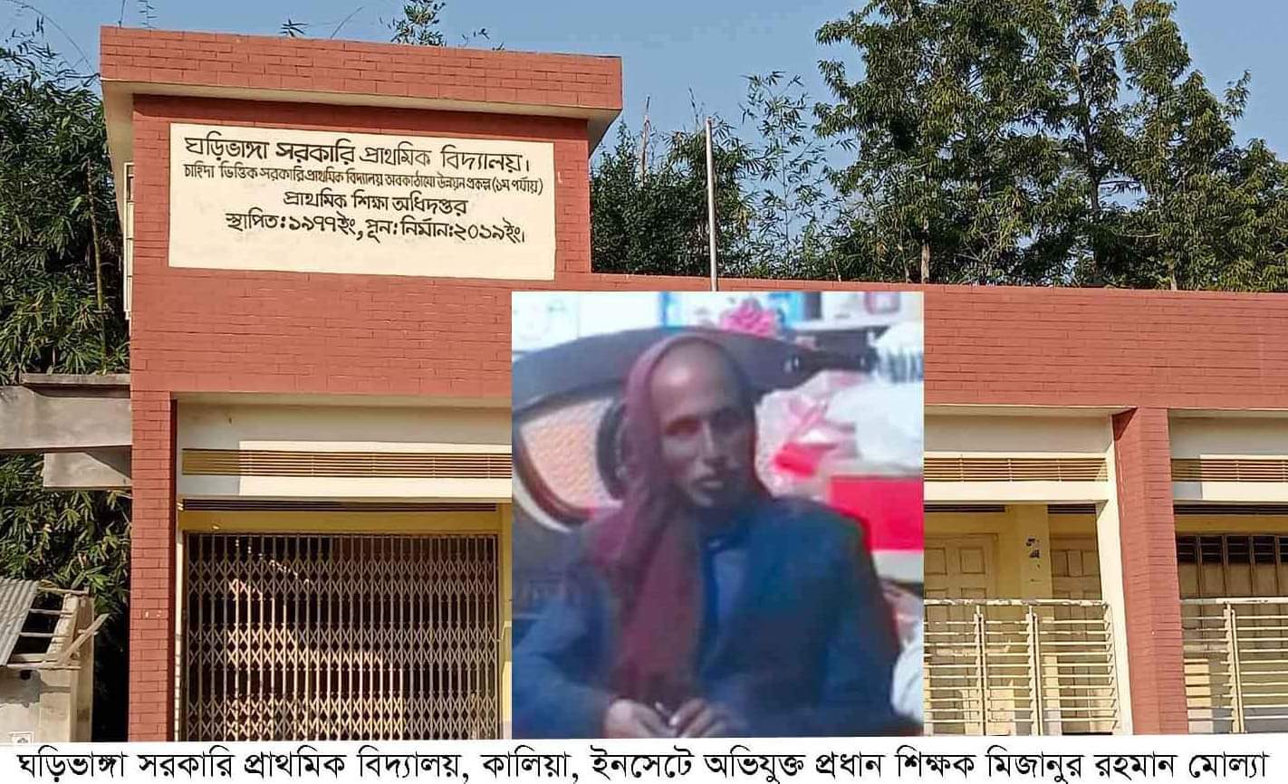 নড়াইলের কালিয়া উপজেলার নড়াগাতী থানার ঘড়িভাঙ্গা সরকারি প্রাথমিক বিদ্যালয়ের প্রধান শিক্ষক মিজানুর রহমান মোল্যার (৫৬) বিরুদ্ধে একাধিকবার অনৈতিক কর্মকান্ডের অভিযোগ পাওয়া গেছে।মিজানুর রহমান মোল্যা ঘড়িভাঙ্গা গ্রামের হবিবর মোল্যার ছেলে। প্রভাবশালীদের ম্যানেজ করে বিষয়গুলি মিটিয়ে ফেলেছেন কয়েকবার। সাম্প্রতি ৪র্থ শ্রেনীর একটি মেয়ের সঙ্গে ঘটনার পুনরাবৃত্তি হওয়ায় ফুঁসে ওঠেছে অভিভাবক মহল ও স্থানীয়রা। এ ঘটনায় এলাকায় চরম ক্ষোভ বিরাজ করছে। তারা অভিযুক্ত প্রধান শিক্ষকের চরম শাস্তির দাবী জানিয়েছেন। এদিকে অভিযুক্ত প্রধান শিক্ষক সাংবাদিকদের ম্যানেজ করার জন্য বিভিন্ন মহলে দৌড়ঝাপ শুরু করেছেন এবং খবর প্রকাশ না করার জন্য চাপ সৃষ্টি করছেন।