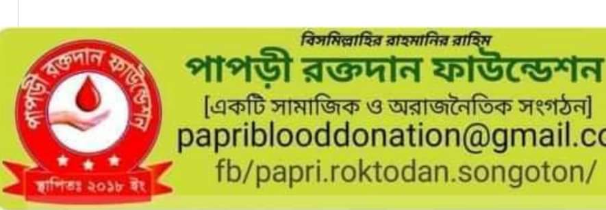 পাপড়ী রক্ত দান ফাউন্ডেশন '(একটি সামাজিক ও অরাজনৈতিক সংগঠন) এর প্রতিষ্ঠাতা পরিচালক নাজমুল হক ফিরোজশাহী এক প্রেস বিজ্ঞপ্তিতে জানান আগামী এক বছরের জন্য 'পাপড়ী রক্ত দান ফাউন্ডেশন ' ১১ সদস্য বিশিষ্ট কেন্দ্রীয় উপদেষ্টা কমিটি ঘোষণা করা হয়েছে। এ কেন্দ্রীয় উপদেষ্টা কমিটি ১৩ অক্টোবর ২০২১ এক প্রেস বিজ্ঞপ্তির মাধ্যমে জানানো হয়। এতে প্রধান উপদেষ্টা হিসেবে মনোনিত হয়েছেন নূর উদ্দিন মন্ডল দুলাল (সাংবাদিক), তথ্য প্রযুক্তি বিষয়ক উপদেষ্টা মোঃ খলিলুর রহমান শেখ (ইকবাল) সাংবাদিক, পরিকল্পনা বিষয়ক উপদেষ্টা এমদাদুল ইসলাম (সাংবাদিক) নারী ও শিশু বিষয়ক উপদেষ্টা ইঞ্জিনিয়ার এম,আর মাসুম, সামাজ সেবা ও খেলা ধূলা বিষয়ক উপদেষ্টা শেখ ফরিদ (ব্যবসায়ী),সামাজিক আন্দোলন ও হাওর বিষয়ক উপদেষ্টা হাওর বন্ধু মোঃ ইকবাল হোসেন (শিক্ষক ও সাংবাদিক) ,শিক্ষা বিষয়ক উপদেষ্টা সামছুদ্দোহা ফরিদ (শিক্ষক ও সাংবাদিক), সম্মানিত উপদেষ্টা যথাক্রমে মোস্তাক আহম্মেদ খান(সাংবাদিক),আবুল মনসুর আহম্মেদ (অবঃশিক্ষক), মোঃ হাবিবুর রহমান জামাল(ব্যবসায়ী), রফিকুল ইসলাম রফিক (ব্যবসায়ী) ব্যক্তিবর্গ। উল্লেখ্য যে২০১৮ সালে পাপড়ী রক্ত দান ফাউন্ডেশন প্রতিষ্ঠা লাভ করে এবং জন কল্যাণার্থে পাপড়ী রক্ত দান ফাউন্ডেশন কাজ করে যাচ্ছে।