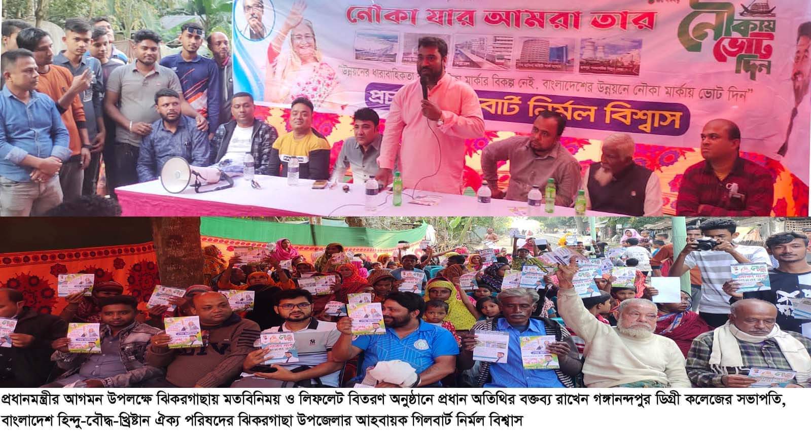 চলো চলো যশোর চলো, শেখ হাসিনার সমাবেশ সফল করো এই স্লোগানকে সামনে রেখে ঝিকরগাছা পৌরসদরের ৫ নং ওয়ার্ডের কীর্তিপুর হঠাৎপাড়া গ্রামে মাননীয় প্রধানমন্ত্রী আগমন উপলক্ষে মতবিনিময় সভা ও মাননীয় প্রধানমন্ত্রীর উন্নয়ন লিফলেট বিতরণ করা হয়েছে। এ মতবিনিময় সভায় প্রধান অতিথি ছিলেন, ৮৬, যশোর-২ (চৌগাছা-ঝিকরগাছা) আসনের নৌকা প্রতীকের মনোনয়ন প্রত্যাশী, গঙ্গানন্দপুর ডিগ্রী কলেজের সভাপতি, বাংলাদেশ হিন্দু-বৌদ্ধ-খ্রিষ্টান ঐক্য পরিষদের ঝিকরগাছা উপজেলার আহবায়ক গিলবার্ট নির্মল বিশ্বাস।