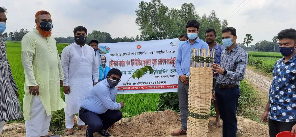 বঙ্গবন্ধুর সুযোগ্য কন্যা প্রধানমন্ত্রী শেখ হাসিনার ৭৫তম শুভ জন্মদিন উপলক্ষ্যে দিনটিকে চিরস্মরণীয় করে রাখতে বগুড়ার শাজাহানপুর উপজেলায় বৃক্ষরোপণ করলেন জেলা প্রশাসক মো. জিয়াউল হক।