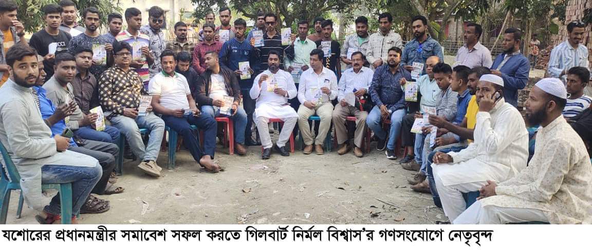 যশোরের প্রধানমন্ত্রীর শুভাগমন উপলক্ষ্যে ও যশোর জেলা আওয়ামীলীগের বিশাল জনসভা সফল করার লক্ষ্যে ঝিকরগাছা উপজেলার গঙ্গানন্দপুর ইউনিয়ন, মাগুরা ইউনিয়ন ও চৌগাছা উপজেলার পাশাপোল ইউনিয়নসহ বিভিন্ন স্থানে নেতাকর্মীদের সাথে নিয়ে গণসংযোগ করেছেন, যশোর-২ (চৌগাছা-ঝিকরগাছা) আসনের মনোনয়ন প্রত্যাশী গঙ্গানন্দপুর ডিগ্রী কলেজের সম্মানিত সভাপতি, বাংলাদেশ হিন্দু-বৌদ্ধ-খ্রিষ্টান ঐক্য পরিষদের, ঝিকরগাছা উপজেলার আহবায়ক গিলবার্ট নির্মল বিশ্বাস। এসময় তিনি নেতাকর্মীদের উদ্দেশ্য করে বলেন, মাননীয় প্রধানমন্ত্রী যাকে নৌকা দিবে আমরা তার। উন্নয়নের ধারাবাহিকতা রক্ষায় নৌকা মার্কার বিকল্প নেই, বাংলাদেশের উন্নয়নে নৌকা মার্কায় ভোট দিন এবং আগামী ২৪ নভেম্বর মাতা, সফল রাষ্ট্র নায়ক দেশরত্ন জননেত্রী শেখ হাসিনার যশোর শুভাগমন উপলক্ষ্যে ও যশোর জেলা আওয়ামীলীগের বিশাল জনসভা সফল করতে দলে দলে যোগদিন।