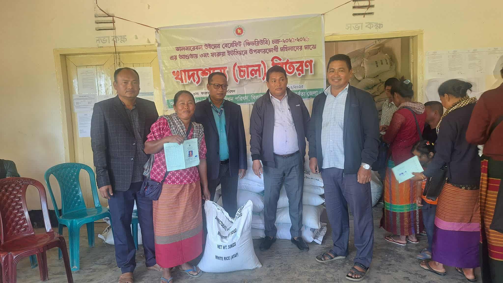 শুক্রবার (৫ ডিসেম্বর ) সকালে মহিলা ও শিশু বিষয়ক মন্ত্রণালয়ের অধীনে, মহিলা বিষয়ক অধিদপ্তর-এর বাস্তবায়নে এবং ইউনিয়ন পরিষদের সহযোগিতায় ফারুয়া ইউনিয়ন পরিষদ প্রাঙ্গণ হতে ৬০০ জন সুফলভোগীর মাঝে নভেম্বর ২০২৫ এক মাসের চাল ৩০ কেজি হারে বিতরণ করা হয়েছে। বিতরণের সময় তদারকি কর্মকতা( ট্যাগ) হিসেবে উপস্থিত ছিলেন উপজেলা পল্লী সঞ্চয় ব্যাংকের ব্যাবস্থাপক নিত্যলাল তঞ্চঙ্গ্যা। এছাড়াও উপস্থিত ছিলেন ইউনিয়ন পরিষদ প্রশাসনিক কর্মকর্তা সিদ্ধার্থ তঞ্চঙ্গ্যা,সংরক্ষিত মহিলা মেম্বার ১, ২, ৩ নং ওয়ার্ডের মনিলতা তঞ্চঙ্গ্যা , ৪, ৫, ৬ নং ওয়ার্ডের মহিলা মেম্বার সুমিতা দেবী তঞ্চঙ্গ্যা , ৭, ৮, ৯ নং ওয়ার্ডের সংরক্ষিত মহিলা মেম্বার চোখপুরী তঞ্চঙ্গ্যা।আরও ছিলেন ওয়ার্ড মেম্বার উজ্জল তঞ্চঙ্গ্যা, আনন্দ তঞ্চঙ্গ্যা, শান্তি কুমার তঞ্চঙ্গ্যা, রিনু কুমার তঞ্চঙ্গ্যা, সিদ্ধার্থ চাকমা, যতিন তঞ্চঙ্গ্যা, সুবানন্দ তঞ্চঙ্গ্যা এবং মালসম পাংখোয়া।