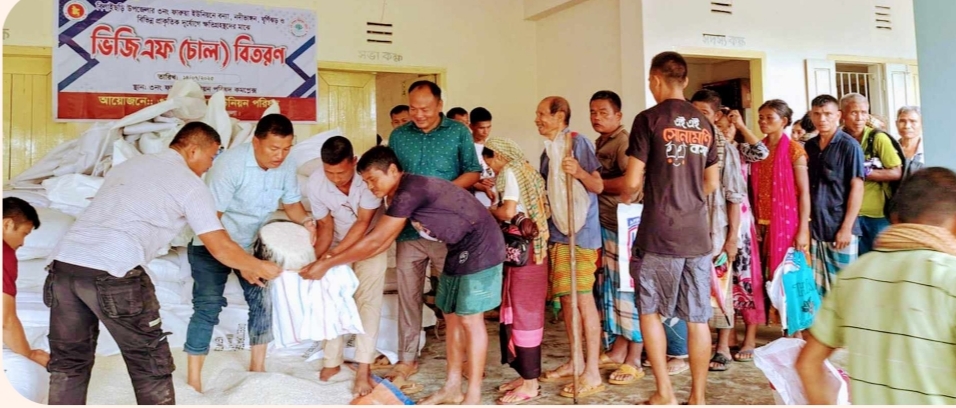বিলাইছড়ি উপজেলার দুর্গম ফারুয়া ইউনিয়নে প্রাকৃতিক দুর্যোগে ক্ষতিগ্রস্থ(অতিবৃষ্টি বন্যা) ৮০০ পরিবারের মাঝে ভিজিএফ চাউল (চাল) বিতরণ করা হয়েছে। সোমবার (১৪ ই জুলাই ) দুপুরে নিজ কার্যালয় হতে এইসব চাউল বিতরণ করা হয়। এসময় ইউনিয়ন পরিষদ চেয়ারম্যান বিদ্যালাল তঞ্চঙ্গ্যা নিজেই উপস্থিত থেকে এইসব চাউল বিতরণ করেন । এছাড়াও ট্যাগ অফিসার নিত্যলাল তঞ্চঙ্গ্যা এর পক্ষে উপস্থিত ছিলেন কনক তঞ্চঙ্গ্যা, ইউপি প্রশাসনিক কর্মকর্তা সিদ্ধার্থ তঞ্চঙ্গ্যা, মহিলা মেম্বার চোখপুরী তঞ্চঙ্গ্যা, মনিলতা তঞ্চঙ্গ্যা,সুমিতা দেবী তঞ্চঙ্গ্যা, ওয়ার্ড মেম্বার উজ্জ্বল তঞ্চঙ্গ্যা, আনন্দ তঞ্চঙ্গ্যা,শান্তি কুমার তঞ্চঙ্গ্যা,যতীন তঞ্চঙ্গ্যা,রেণু কুমার তঞ্চঙ্গ্যা, সুবানন্দ তঞ্চঙ্গ্যা,সিদ্ধার্থ চাকমা,মালসম পাংখোয়া উপস্থিত ছিলেন। প্রাকৃতিক দুর্যোগের(অতি বৃষ্টি,বন্যা) ক্ষতিগ্রস্হ ৮০০ পরিবারের মাঝ ১০ কেজি করে বিতরণ করা হয়েছে।