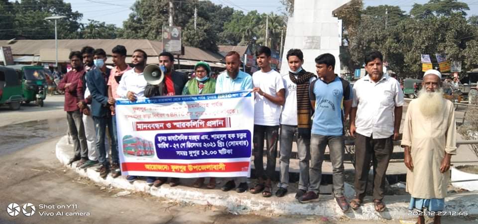 মানববন্ধন শেষে ফুলপুর উপজেলা নির্বাহী অফিসার বরাবর একটি স্মারকলিপি দেওয়া হয়।