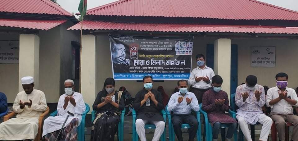 ফুলপুর পৌর শহর থেকে ৩কি.মি. দুরে সদর ইউনিয়নের আশ্রয়ণ প্রকল্পে এক সাথে ৪৪টি পরিবার। একসময় কিছুই ছিল না মাথা গোঁজার ঠাঁই। বঙ্গবন্ধুর কন্যা প্রধানমন্ত্রী দিলেন জমিসহ ঘর। ১৫ আগস্ট প্রধানমন্ত্রীর বাবা-মা সহ পরিবার ও নিকটাত্মীয়দের কে হত্যা করা হয়। মর্মান্তিক এ খবর টেলিভিশনে দেখে চোখের পানি ধরে রাখতে পারেনি ঘর পাওয়া এসব অসহায় পরিবারের লোকজন। তাদের কথা ‘যাঁর জন্য ভাগ্য খুইল্যা দিছে‘ প্রধানমন্ত্রী ঘর দিলেন ‘ প্রধানমন্ত্রীর বাবা জাতির পিতার জন্য জাতীয় শোক দিবসের আয়োজনে শরীক হলেন । অন্যরকম এ শোক দিবস অনুষ্ঠানে উপস্থিত হন ফুলপুর উপজেলা প্রশাসন ,ইউপি চেয়ারম্যানসহ অনেকেই। এসব উপকারভোগীদের এমন অনুষ্ঠানের আয়োজন দেখে আবেগাপ্লুত হয়ে পড়েন ফুলপুর উপজেলা নির্বাহী অফিসার( ইউএনও) শীতেষ চন্দ্র সরকার সহ সকলেই। নগুয়া আশ্রয়ণ প্রকল্পের জাতীয় শোক দিবসটি অন্যরকম বলে মন্তব্য করেন। সেখানে গিয়ে দেখা যায়, স্থানীয় মসজিদের ইমাম সহ আশ্রয়ণের নিজ ঘরের সামনেই বসা। কোরআন খতমসহ দোয়া মাহফিলের আয়োজন। অপর দিকে অরুন চন্দ্র বিশ্বাস নামের একজন উপকারভোগী বড় পর্দায় বঙ্গবন্ধুর জন্য খ্যাতিমান শিল্পীদের বিভিন্ন গান ,যদি রাত পোহালে শোনা যেতো ,বঙ্গবন্ধু মরে নাই- শোন একটি মুজিবুরের থেকেসহ বিভিন্ন গান। ফশর আলী (৭৫) , নূরজাহান,রেনু রানী, মর্জিনা খাতুন সহ এসব ঘরের বাসিন্ধারা জানান, প্রধানমন্ত্রী আমাদের জন্য ঘর উপহার দিলেন সারাজীবন তাঁর পরিবারের জন্য দোয়া করবো । এ সময় স্থানীয় ইউপি চেয়ারম্যান জাহাঙ্গীর আলম শুরুতেই বক্তব্য রাখেন। ফুলপুরের সহকারী কমিশনার (ভূমি) ফারজানা আক্তার ববি বঙ্গবন্ধুকে নিয়ে সরল ভাষায় তাঁদের সামনে এ মহান নেতার জীবন সমন্ধে তুলে ধরেন। আশ্রয়ণ পরিবারের উদ্যোগে জাতীয় শোক দিবস অনুষ্ঠানের প্রধান অতিথি ফুলপুর উপজেলা নির্বাহী অফিসার (ইউএনও) শীতেষ চন্দ্র সরকার ১৫ আগস্টের ভয়াল স্মৃতির কথা তুলে ধরেন। বঙ্গবন্ধুর স্মৃতিচারণা করতে গিয়ে তিনি বলেন, বঙ্গবন্ধুর স্বপ্ন ছিল সোনার বাংলা গড়ার। এ দেশে গৃহহীনদের জন্য তিনিই প্রথম কাজ করেন।জাতির পিতাকে হত্যা করলেও তাঁর স্বপ্ন ও আদর্শকে নিয়ে মাননীয় প্রধানমন্ত্রী দেশ পরিচালনা করছেন। এ সময় উপস্থিত সবাই হতবাগ হয়ে যান। অনেকের চোখে পানি নিয়ে দোয়া ও মিলাদ মাহফিলে অংশ গ্রহন করেন। এ সময় উপস্থিত ছিলেন শুভসংঘের উপদেষ্টা কৃষিবিদ কামরুল হাসান কামু ,উপজেলা জনস্বাস্থ্য প্রকৌশলী দারুস সালাম, সিনিয়র সাংবাদিক বিল্লাল হোসাইন, মোস্তফা খান প্রমুখ।