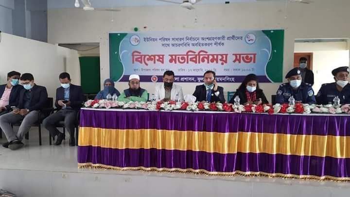 ফুলপুর ইউপি নির্বাচনে প্রার্থীদের সাথে প্রশাসনের মতবিনিময় সভা অনুষ্ঠিত