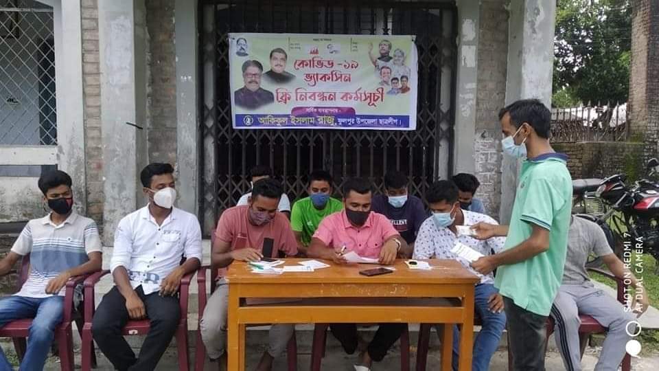 জননেতা জনাব শরীফ আহমেদ (এম,পি )মহোদয়ের নির্দেশ ও কেন্দ্রীয় ছাত্রলীগের নির্দেশ মোতাবেক আজ কোভিড-১৯ ভ্যাকসিন ফ্রী নিবন্ধনের কর্মসূচী করা হয়।দেশ বাঁচাতে বিনামূল্যে ভ্যাকসিন দিচ্ছে সরকার পরিবার বাচাতে টিকা নেওয়ার দায়িত্ব আপনার” – এই স্লোগান কে সামনে রেখে সকলকে করোনা ভ্যাকসিন গ্রহনে আগ্রহী করে তুলতে এবং সাধারণ জনগণকে সচেতন করে তুলতে এই উদ্যোগ গ্রহণ করেছে ফুলপুর উপজেলা ছাত্রলীগ। আগামী ৭ আগস্ট থেকে ইউনিয়ন পর্যায়ে করোনার টিকাদান শুরু হবে। টিকা গ্রহণ করতে হলে ‘সুরক্ষা অ্যাপের’ মাধ্যমে নিবন্ধন করতে হয়। কিন্তু এই পদ্ধতির সাথে পরিচিত নন এলাকার অধিকাংশ মানুষ। আকিকুল ইসলাম রাজু বলেন, আবার যারা জানেন লকডাউনের মধ্যে নিবন্ধন শেষে টিকা কার্ড ছাপা করানো নিয়ে দুশ্চিন্তায় আছেন।প্রতিটি ওয়ার্ডে ছাত্রলীগ এর কর্মীরা সাধারণ মানুষ এর সেবা করতে সর্বদা নিয়োজিত থাকবে। এলাকার সকল জনসাধারণকে বলতে চাই টিকা নিয়ে আপনি ও আপনার পরিবারকে সুস্থ রাখুন।এ সময় উপস্থিত ছিলেন ফুলপুর উপজেলার ছাত্রলীগের মেধাবী নেতা আকিকুল ইসলাম রাজু ও ওয়াহেদুজ্জামান মানিক, আমিনুল ইসলাম, জসিম উদ্দিন, সাদেকুল ইসলাম সাদেক, পারভেজ মোশারফ, নাজমুল হাসান, নুর উদ্দিন, সানবি হাসান শামীম, আরিফুল ইসলাম আরিফ, আশিকুল ইসলাম ট্রনিক, আলামগীর ইসলাম প্রমুখ।