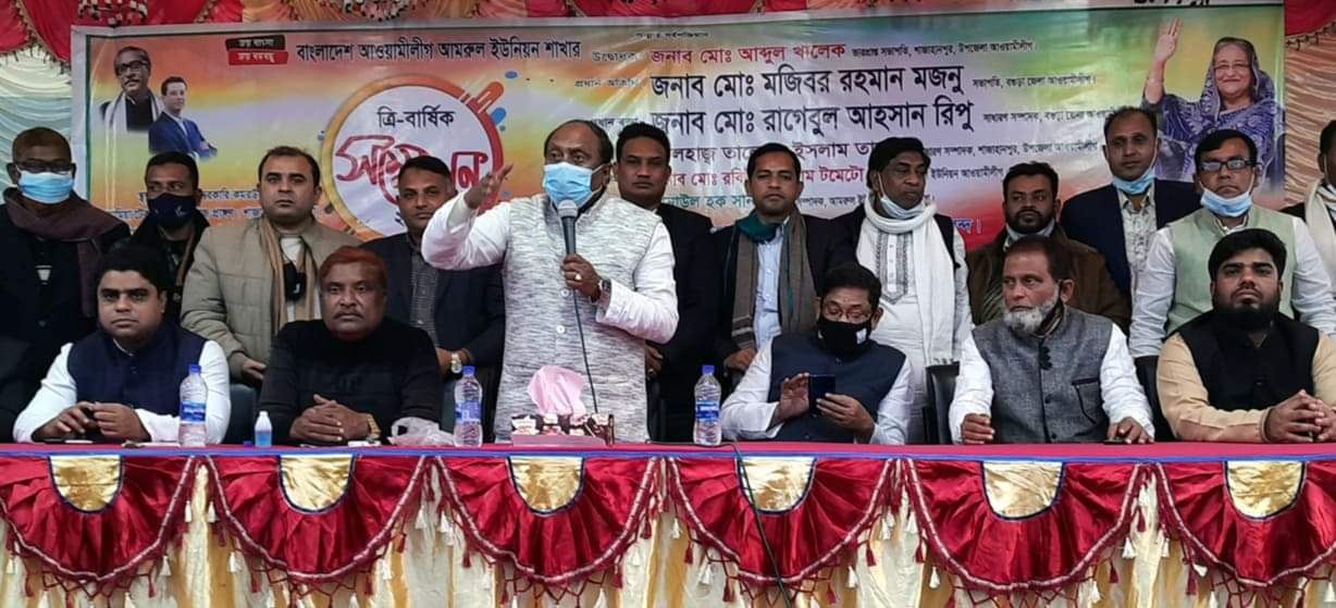 সোমবার বিকেলে বগুড়ার শাজাহানপুরের সরকারি কমরউদ্দিন ইসলামিয়া কলেজ মাঠে আমরুল ইউনিয়ন আওয়ামীলীগের ত্রি-বার্ষিক সম্মেলনে প্রধান অতিথির বক্তব্যে তিনি উপরোক্ত কথা গুলো বলেন। আমরুল ইউনিয়ন আওয়ামীলীগ সভাপতি রবিউল ইসলাম টমেটোর সভাপতিত্বে এবং সাধারণ সম্পাদক ছানাউল হকের সঞ্চালনায় সম্মেলনে প্রধান বক্তার বক্তব্য রাখেন জেলা আওয়ামীলীগের সাধারণ সম্পাদক রাগেবুল আহসান রিপু। বিশেষ অতিথির বক্তব্য রাখেন বগুড়া জেলা আওয়ামীলীগের সহ-সভাপতি টি. জামান নিকেতা, যুগ্ম-সাধারণ সম্পাদক আসাদুর রহমান দুলু, সদস্য প্রভাষক সোহরাব হোসেন ছান্নু, আব্দুল্লাহ্ আল ফারুক, আলমগীর হোসেন স্বপন, উপজেলা আওয়ামীলীগের সাধারণ সম্পাদক তালেবুল ইসলাম। সম্মেলনের উদ্বোধন করেন উপজেলা আওয়ামীগ সভাপতি (ভারপ্রাপ্ত) আব্দুল খালেক মাস্টার। অন্যান্যের মধ্যে অংশ নেন প্রভাষক জহুরুল ইসলাম, মতিউর রহমান সরকার শিশু, জাহিদুল হক আরজু, ফরিদুল ইসলাম মুক্তা, হেফজাত আরা মিরা, নাছির উদ্দিন বাবলু, মিনহাজ উদ্দিন, ফজলুল হক মোল্লা, আবুল কালাম আজাদ বাচ্চু, মোস্তফা কামাল মনা, মনির হোসেন ময়না, ইয়াছিন আলী, লতিফুল বারী দুলু, নেছার উদ্দিন, আব্দুল গাফ্ফার, ইমরান হোসেন, আরিফুল আলম শাওন, বাদশা আলমগীর, আসাদুজ্জামান লিটন, রাকিবুল ইসলাম রঞ্জু, হোসেন শরীফ মনির প্রমুখ। উপজেলা আওয়ামীলীগ সভাপতি (ভারপ্রাপ্ত) আব্দুল খালেক মাস্টারের সভাপতিত্বে সম্মেলনের দ্বিতীয় অধিবেশনে সর্বসম্মতিক্রমে ছানাউল হক ছানা কে আমরুল ইউনিয়ন আওয়ামীলীগের সভাপতি এবং মোমিনুল হক মুক্তা কে সাধারণ সম্পাদক নির্বাচিত করা হয়।