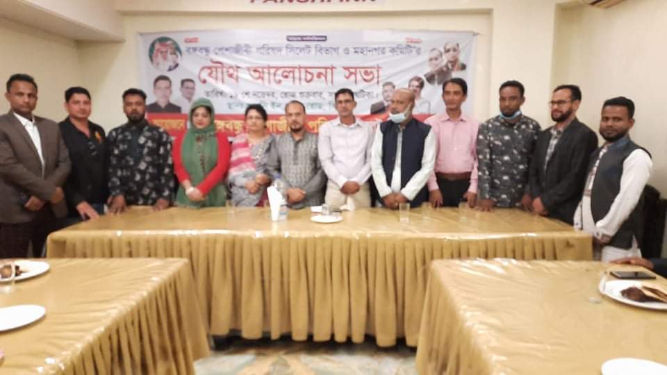 বঙ্গবন্ধু পেশাজীবি পরিষদ সিলেট মহানগর ও বিভাগীয় কমিটির যৌথ উদ্যোগে সিলেটের একটি অভিজাত রেস্টুরেন্টে সিলেট মহানগর কমিটির সাধারণ সম্পাদক মোঃ মোস্তফা উল্লাহর পরিচালনায় কোরআন তেলাওয়াতের মধ্যে দিয়ে প্রধান অতিথি হিসেবে উপস্হিত ছিলেন কেন্দ্রীয় কমিটির প্রেসিডিয়াম সদস্য ও ইউরোপীয় ইউনিয়নের সভাপতি আনোয়ার উদ্দিন আহমদ রুনু। আলোচনা সভায় প্রধান বক্তার বক্তব্য রাখেন বঙ্গবন্ধু পেশাজীবি পরিষদ সিলেট বিভাগীয় কমিটির সভাপতি অধ্যাপক আমিনুল ইসলাম। আলোচনা সভায় সভাপতিত্ব করেন সিলেট মহানগর বঙ্গবন্ধু পেশাজীবি পরিষদের সভাপতি জেসমিন নাহার। বিশেষ অতিথি হিসেবে উপস্তিত ছিলেন বঙ্গবন্ধু পেশাজীবি পরিষদ সিলেট বিভাগীয় কমিটির যুগ্ম সাধারন সম্পাদক অধ্যাপক নজমুল ইসলাম, সিলেট মহানগর কমিটির সহ সভাপতি সৈয়দ আখতার আহমদ চৌধুরী, সিলেট মহানগর কমিটির সহ সভাপতি আনোয়ারুল আজিজ কাজল, সিলেট বিভাগীয় কমিটির সহ সভাপতি আনোয়ারুল হক, সিলেট বিভাগীয় কমিটির সাংগঠনিক সম্পাদক শফিক আহমদ পিয়ার,সিলেট মহানগর কমিটির যুগ্ম সাধারন সম্পাদক সাংবাদিক তোফায়েল আহমদ, সিলেট বিভাগীয় কমিটির দপ্তর সম্পাদক গৌতম চন্দ্র সাহা, সিলেট মহানগর কমিটির যুগ্ম সাধারন সম্পাদক এনামুল হক চৌধুরী, মহানগর কমিটির সাংগঠনিক সম্পাদক কাজী রিফাত আহমদ, মহানগর কমিটির সহ সাংগঠনিক সম্পাদক হোসেন আলী,মহানগর কমিটির সহ সাংগঠনিক সম্পাদক সাদেক আহমদ রুকন,সিলেট বিভাগীয় কমিটির ত্রাণ বিষয়ক সম্পাদক এরশাদ মিয়া, সিলেট মহানগর কমিটির সাংস্কৃতিক বিষয়ক সম্পাদক নাজনীন হাসান, জালালাবাদ থানা আওয়ামীলীগের সহ সভাপতি আবু বক্কর পারভেজ, ২৩ নং ওয়ার্ড আওয়ামিলীগের সাধারণ সম্পাদক শেখ সুহেল আহমদ কবির, সিলেট জেলা যুবলীগ নেতা আবু সুফিয়ান,সিলেট জেলা স্বেচ্ছাসেবক লীগ নেতা হুশিয়ার আলম,বঙ্গবন্ধু ফাউন্ডেশন সিলেট জেলা আন্তর্জাতিক বিষয়ক সম্পাদক আল আমিন জয়নাল,সিলেট জেলা স্বেচ্ছাসেবক লীগ নেতা মুন্না আহমদ,সিলেট সদর স্বেচ্ছাসেবক লীগ নেতা আশরাফ আলী, আরিফ আহমদ,সিলেট বিভাগীয় কার্যকরী সদস্য ইসমাইল আলী,প্রভাতী হোটেল এন্ড পার্টি সেন্টারের পরিচালক আরাধন তালুকদার,প্রধান বক্তার বক্তব্যে অধ্যাপক আমিনুল ইসলাম বলেন আমরা আমাদের প্রাণপ্রিয় সংগঠন বঙ্গবন্ধু পেশাজীবি পরিষদের আগামী ৯ ই ডিসেম্বর প্রতিষ্ঠা বার্ষিকী পালন করতে আমরা কেন্দ্রীয় কমিটির প্রতিষ্ঠাতা সভাপতি জহির উদ্দিন মবু ভাইয়ের দিক নির্দেশনা মোতাবেক যেকোন সিদ্ধান্ত নিতে প্রস্তুত আছি। প্রধান অতিথির বক্তব্যে কেন্দ্রীয় প্রেসিডিয়াম সদস্য আনোয়ার উদ্দিন আহমদ রুনু বলেন, আমাদের সংগঠনের সকলের মতামতের ভিত্তিতে আমরা সিলেটে আমাদের প্রতিষ্ঠা বার্ষিকী পালন করবো। সিলেটের 