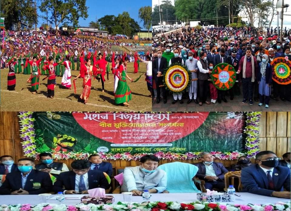 এদিকে, বিজয় দিবস উপলক্ষে সকাল দশটায় রাঙ্গামাটি পার্বত্য জেলা পরিষদের সভাকক্ষে বীর মুক্তিযোদ্ধাদের সংবর্ধনা প্রদান ও আলোচনা সভা অনুষ্ঠিত হয়েছে। সভায় জেলা পরিষদের চেয়ারম্যান অংসুইপ্রু চৌধুরীর সভাপতিত্বে প্রধান অতিথি খাদ্য মন্ত্রণালয় সম্পর্কিত সংসদীয় স্থায়ী কমিটির সভাপতি দীপংকর তালুকদার এমপি সহ অন্যান্য কর্মকর্তাগণ উপস্থিত ছিলেন।