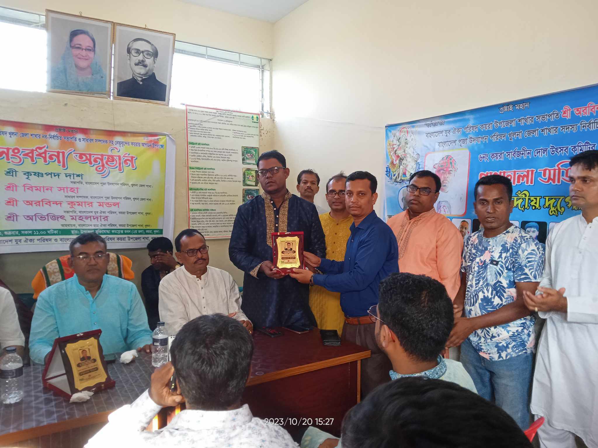 বাংলাদেশ পূজা উদযাপন পরিষদের খুলনা জেলার নেতৃবৃন্দদের কয়রা উপজেলা যুব ঐক্য পরিষদ ও ছাত্র ঐক্য পরিষদের উদ্যোগে সংবর্ধিত করা হয়েছে।