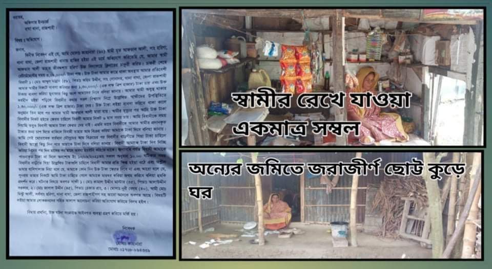 স্থানীয়রা জানান, তাদের কোন ছেলে না থাকায় আফতাব মারা যাওয়ার পর তার স্ত্রী খুবই অসহায় হয়ে পড়েন। তাদের নিজের জমি না থাকায় ইউপি সদস্যের সহযোগিতায় অন্যের জমিতে একটি ছোট ঘর করে স্বামীর রেখে যাওয়া শেষ সম্বল ছোট্ট দোকানটিকে আকড়ে ধরে তিনি থাকেন সেই কুড়ে ঘরে।