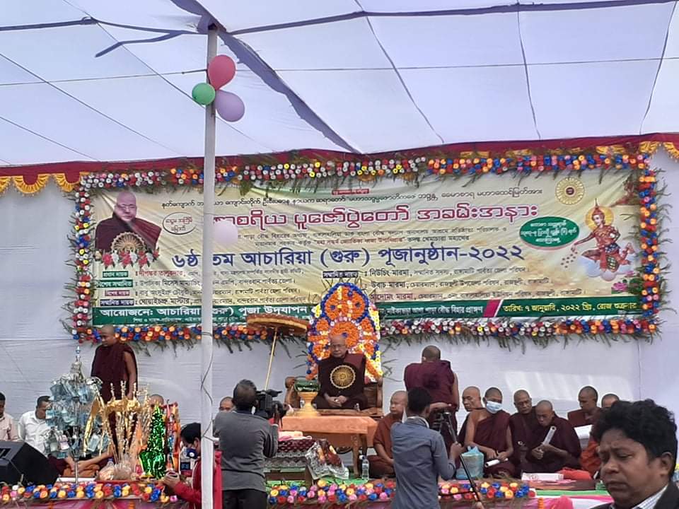 অনুষ্ঠানে বিশেষ অতিথি হিসেবে উপস্থিত ছিলেন, ভদন্ত রাজিন্দা ভিক্ষু, ভদন্ত জতিকা থের, সাবেক জেলা পরিষদের চেয়ারম্যান থোয়াইচপ্রু মাষ্টার, রাজস্থলী উপজেলা পরিষদের চেয়ারম্যান উবাচ মারমা, মানবধিকার নারী নেত্রী ডলিপ্রু মারমা নেলি,বান্দরবান। রাজস্থলী উপজেলা পরিষদের ভাইস চেয়ারম্যান অংনুচিং মারমা, গাইন্দ্যা ইউপি চেয়ারম্যান পুচিংমং মারমা, ঘিলাছড়ি ইউপি চেয়ারম্যান রবার্ট ত্রিপুরা বাঙ্গালহালিয়া ইউপি চেয়ারম্যান আদোমং মারমা, বলিপাড়া ইউপি চেয়ারম্যান জেঅং মারমা পুলক বড়ুয়া, উক্যচিং মারমা ব্যাংকার , অভি চৌধুরী, পুলক চৌধুরী, সদস্য সচিব হ্লাথোয়াইচিং মারমা, সুইথুইমং মারমা, চাইথোয়াইমং মারমা, উঃ গাইন্দামালা মহাথের, ইন্দিয়া ভিক্ষু, উঃ ইউজারা ভিক্ষুসহ তিন পার্বত্য জেলার ভিক্ষু সংঘ উপস্থিত ছিলেন। ধর্মীয় অনুষ্ঠানে বিভিন্ন বিহারের বিহার অধ্যক্ষ, ভিক্ষু ও আগত দায়ক-দায়িকাগনরা এ মহাথের গুরু ভান্তেকে বিভিন্ন দানীয় সামগ্রী পূজা ফল ফুলসহ নিজ হাতে উপহার প্রদান করা হয়েছে। শেষান্তে গুরু পূজানুষ্ঠানে ভদন্ত খেমাচারা মহাথের জানান, বিহার ও অাশ্রমের সামনের দিকে উন্নয়ন এগিয়ে যেতে পারি, উপাসক ও উপাসিকা সরকারী বেসরকারি প্রতিষ্ঠান হতে অনুদানের জন্য আর্থিক সার্বিক সহযোগিতায় পাওয়ার জন্য আহবান জানাই। সাথে নতুন বান্দরবান জেলাতে বালাঘাটা এলাকায় ১ বৌদ্ধ বিহার, ১ টি অনাথ আশ্রম সহ জাদি নিজ অর্থায়নের নির্মানাধীন রয়েছে। সব্বে স ত্তা সুখীতা হোন্ত জগতে সকল প্রাণী সুখী হউক। সাধু-৩।