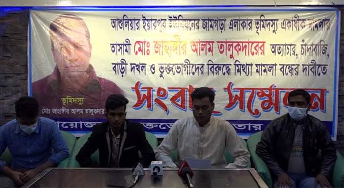 সংবাদ সম্মেলনে জাহিদ হাসান তার লিখিত বক্তব্যে বলেন, আশুলিয়ার ইয়ারপুর ইউনিয়নের জামগড়া এলাকার চিহ্নিত ভূমিদস্যু একাধিক মামলার আসামী জাহাঙ্গীর আলম তালুকদারের অত্যাচারে অতিষ্ঠ আমরা সবাই। মিথ্যা ও হয়রানীমূলক মামলা দিয়ে বাড়ী-ঘর এখন দখল করে নিয়েছে।