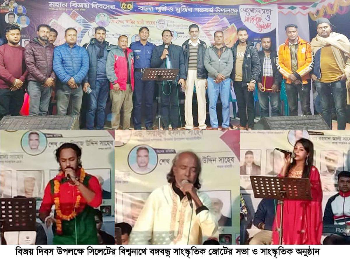 স্বাধীনতার সুবর্ণজয়ন্তী ‘মহান বিজয় দিবস ও মুজিববর্ষ’ উপলক্ষে সিলেটের বিশ্বনাথে উপজেলার দৌলতপুর ইউনিয়নের সিঙ্গেরকাছ বাজারে বঙ্গবন্ধু সাংস্কৃতিক জোটের উদ্যোগে আলোচনা সভা ও সাংস্কৃতিক অনুষ্ঠান রোববার রাতে অনুষ্ঠিত হয়েছে।
