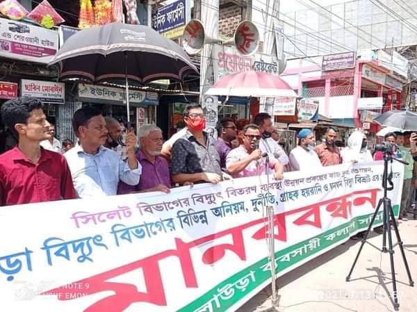 ঘন ঘন বিদ্যুৎ বিভ্রাট,গ্রাহক হয়রানি, অতিরিক্ত ও ভুতুড়ে বিল প্রদান সহ কুলাউড়া বিদ্যুৎ বিতরণ বিভাগের বিভিন্ন অনিয়ম দুর্নীতির দ্রুত প্রতিকার চেয়ে মানববন্ধন কর্মসূচি পালন করেছে কুলাউড়ার সর্ব বৃহৎ ব্যবসায়ী সংগঠন কুলাউড়া ব্যবসায়ী কল্যাণ সমিতি।