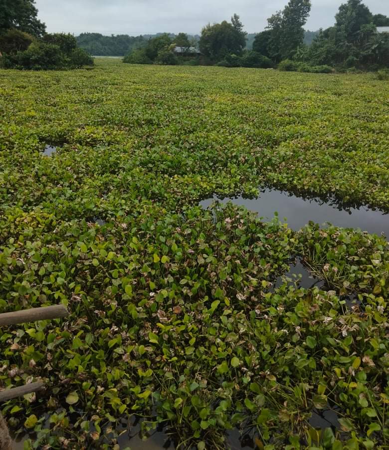 প্রায় ৩ কিলোমিটার এলাকা জুড়ে পানি বা নৌ- পথে কচুরিপানা বিলজুরে বুকজুরে রয়েছে।