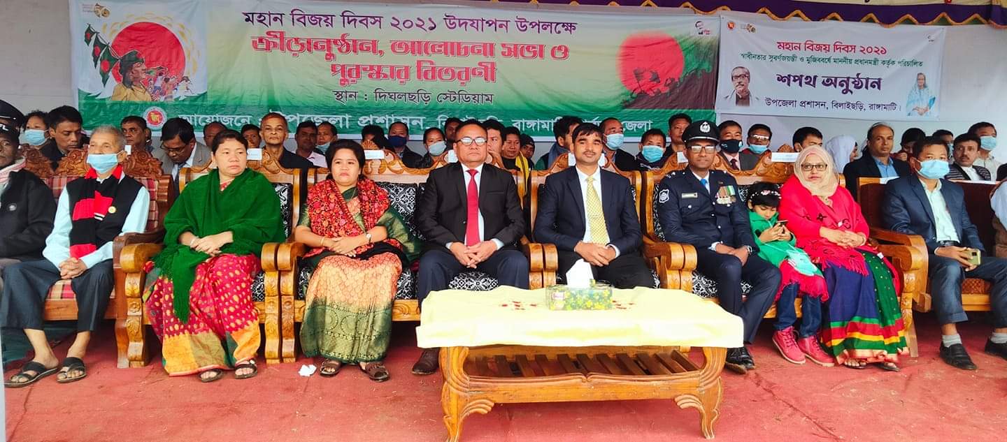 বিলাইছড়ি (রাঙ্গামাটি) প্রতিনিধিঃ বিলাইছড়ি উপজেলায় পরিষদ ও প্রশাসনের আয়োজনে মহান বিজয় দিবস উদযাপন ২০২১ উপলক্ষে ক্রীড়া অনুষ্ঠান, আলোচন সভা ও পুরস্কার বিতরণ ও স্বাধীনতার সুবর্ণজয়ন্তি মুজিব বর্ষে প্রধানমন্ত্রী কর্তৃক শপথ অনুষ্ঠান অনুষ্ঠিত হয়েছে।