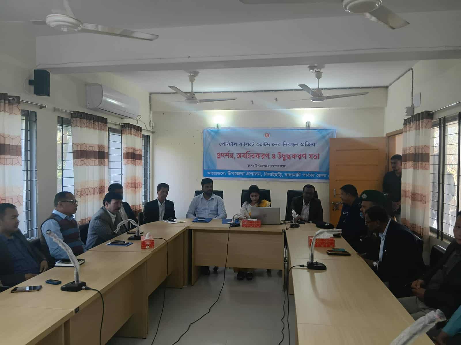 বিলাইছড়ি (রাঙ্গামাটি) প্রতিনিধিঃ- রাঙ্গামাটির বিলাইছড়ি উপজেলা প্রশাসনের উদ্যোগে পোস্টাল ব্যালটে ভোটদানের নিবন্ধন প্রক্রিয়া প্রদর্শন ও উদ্বুদ্ধকরণ সভা অনুষ্ঠিত হয়েছে।