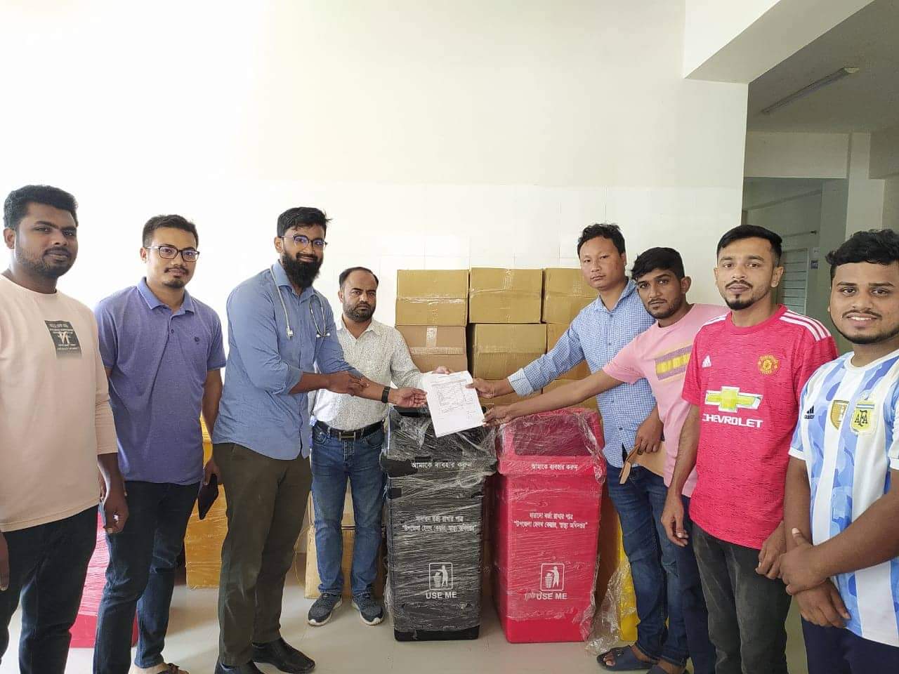 উপকরণ মধ্যে ব্ল্যাক বিন ১০ পিস,রেড বিন ৫ পিস, ইয়েলো বিন ৫ পিস,হোয়াইট বিন ৫ পিস, গ্রীন বিন ৫ পিস, হ্যান্ডট্রে ৫ পিস,ড্রেন ব্রাশ ৫ পিস ,মগ ৫ পিস,গামলা ৫ পিস, বালতি ৫ পিস , কোদাল ৫ পিস, বেলচা ৫ পিস, নিডেল ক্রাসার ৩ পিস,ওয়েস্ট ক্যারিং ট্রলি ১০ পিস ,গার্বজ ব্যাগ ১০ প্যাকেট,হেভী ডিউটি গ্লাভস্ ৫ জোড়া ,এপ্রোন ১০ পিস ,মাক্স ১০ পিস,ক্যাপ ১০ পিস, গগল ৫ পিস ও গামবুট ৫ জোড়া।