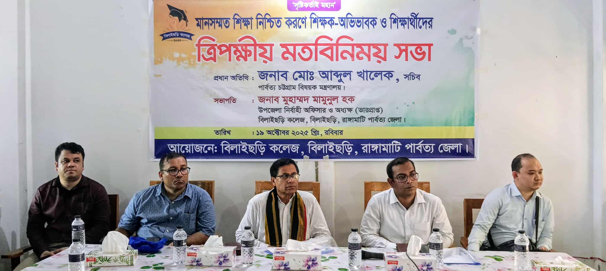 রবিবার ( ১৯ অক্টোবর) প্রশাসনের আয়োজনে দুপুরে বিলাইছড়ি উপজেলায় পৌঁছালে উপজেলা প্রশাসন, উপজেলা বিএনপি,শিক্ষা প্রতিষ্ঠান এবং অন্যান্য দপ্তর হতে প্রধান অতিথি সচিব মহোদয়কে পুস্পমাল্য দিয়ে বরন করা হয়। সফরে সচিব কলেজের একাডেমিক ভবন নির্মাণের জায়গা পরিদর্শন করেন।