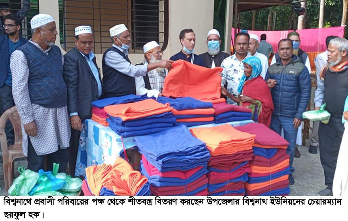 সিলেটের বিশ্বনাথে প্রবাসী পরিবারের উদ্যোগে উপজেলার দেওকলস ইউনিয়নের কালীজুরী গ্রামে প্রবাসী ময়নুল ইসলামের বাড়িতে এলাকার প্রায় ৪ শতাধিক অসহায়-দরিদ্র পরিবারের সদস্যদের মধ্যে শীতবস্ত্র (কম্বল) ও খাদ্য সামগ্রী বিতরণ করা হয়েছে।