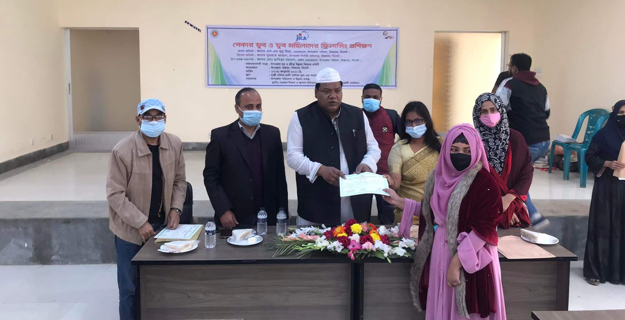 সিলেটের বিশ্বনাথে উপজেলা পরিচালন ও উন্নয়ন প্রকল্প, স্হানীয় সরকার বিভাগ ও জাপান ইন্টারন্যাশনাল কো-অপারেশন এজেন্সী (জাইকা) এর সহায়তায় বেকার যুবা/নারীদের আত্ন-কর্মসংস্হান মূলক প্রশিক্ষণ শেষে প্রশিক্ষণার্থীদের সার্টিফিকেট প্রদান করা হয়েছে।