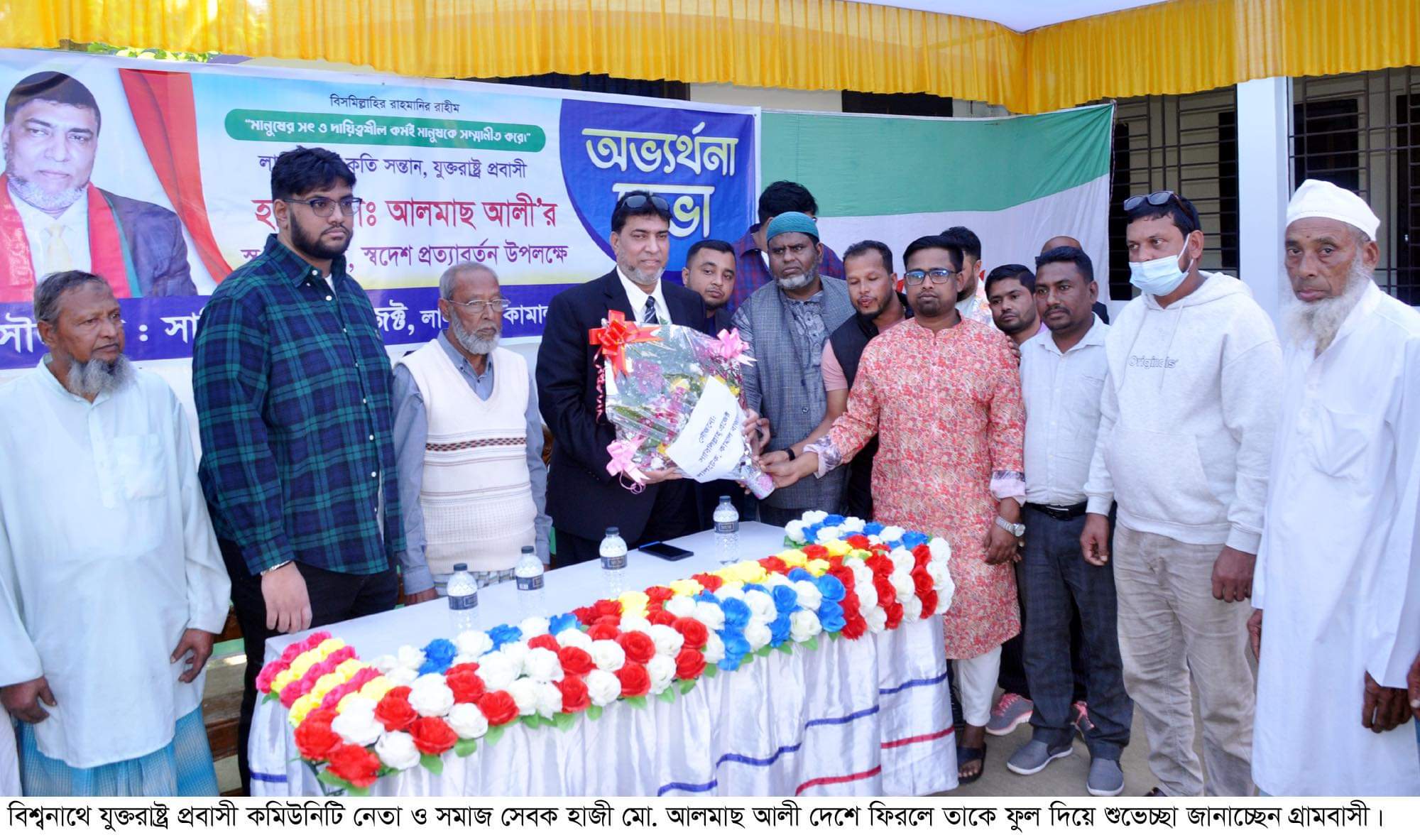 সাবেক ইউপি সদস্য তছির আলীর সভাপতিত্বে ও সংগঠক ইমরান মিয়ার পরিচালনায় অনুষ্ঠিত অভ্যর্থনা সভায় বক্তব্য রাখেন যুক্তরাষ্ট্র প্রবাসী কমিউনিটি নেতা ও সমাজ সেবক হাজী মো. আলমাছ আলী।