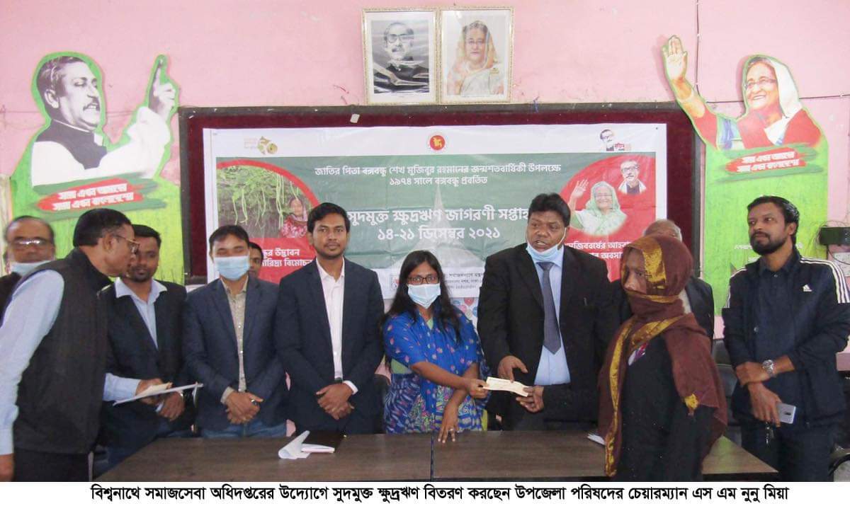 সুদমুক্ত ক্ষুদ্রঋণ জাগরণী সপ্তাহ (১৪-২১ ডিসেম্বর) উপলক্ষ্যে উপজেলার ১৩টি ঋণ স্কিমে ১৩০জন উপকারভোগীর মধ্যে প্রায় ২৬ লাখ টাকা বিতরণ করা হয়। জানাগেছে এ পর্যন্ত বিশ্বনাথে উপজেলায় সমাজসেবা কার্যালয় কর্তৃক প্রায় ১ কোটি ৮ লাখ টাকার ক্ষুদ্রঋণ বিতরণ করা হয়েছে।