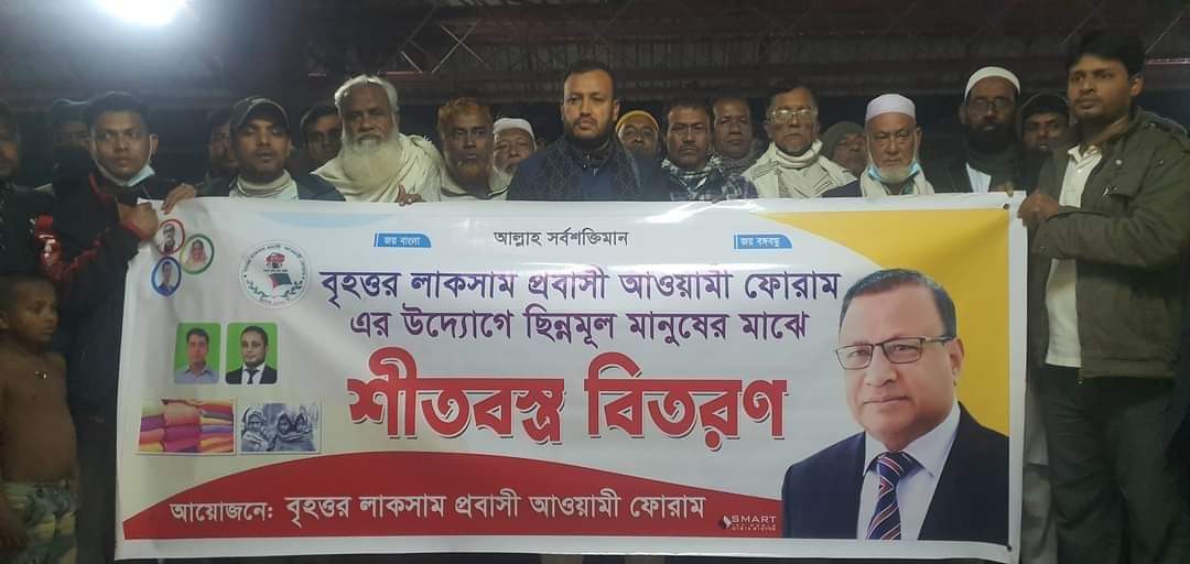(১ জানুয়ারি) শনিবার রাত ৯টায় বৃহত্তর লাকসাম প্রবাসী আওয়ামী ফোরামের সভাপতি আনিসুর রহমান ও সাধারণ সম্পাদক জহির আহমেদের উদ্যোগে শীতবস্ত্র (কম্বল) বিতরণ করা হয়।
