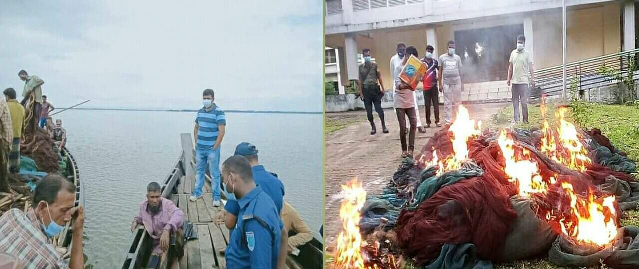 সোমবার (০২ আগস্ট) সকাল আটটা থেকে বিকেল সাড়ে তিনটা পর্যন্ত প্রায় আটঘন্টা এই অভিযান চালানো হয়। তবে প্রশাসনের উপস্থিতি টের পেয়ে মাছ শিকারিরা পালিয়ে যায়। এ কারণে কাউকে আটক করা সম্ভব হয়নি।