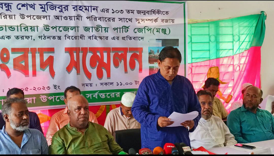 ভান্ডারিয়া উপজেলা পরিষদের ভাইস চেয়ারম্যান ও জাতীয় পার্টি জেপি সাবেক যুগ্ম আহবায়ক মশিউর রহমান মৃধা সংবাদ সম্মেলনের লিখিত বক্তব্যে বলেন, স্থানীয় আওয়ামী লীগের সঙ্গে সুসম্পর্ক ও গত ১৯ শে মার্চ উপজেলা আওয়ামী লীগের আয়োজনে বঙ্গবন্ধু শেখ মুজিবুর রহমানের জন্মবার্ষিকী অনুষ্ঠানে অংশগ্রহণের কারণে নানা অযুহাত দেখিয়ে গত ৭ মে জাতীয় পার্টি জেপির কেন্দ্রীয় কমিটির ভাইস চেয়ারম্যান ও ভান্ডারিয়া উপজেলা কমিটির উপদেষ্টা সাধারণ সম্পাদক এবং ধাওয়া ইউনিয়ন পরিষদ চেয়ারম্যান সিদ্দিকুর রহমান টুলু সহ সভাপতি ও উপজেলা পরিষদের ভাইস চেয়ারম্যান মোঃ মশিউর রহমান মৃধা, সহ সভাপতি মোঃ ইউসুফ আলী আকন এবং সহ সভাপতি ও নদমূলা ইউনিয়ন পরিষদ চেয়ারম্যান মেজবাহ্ উদ্দিন আরিফকে বহিষ্কার করা হয়েছে বলে বিভিন্ন গণমাধ্যমে সংবাদ প্রকাশ হয়, তবে এসম্পর্কে কোন শোকজ বা নোটিশ দেওয়া হয়নি তাদের।