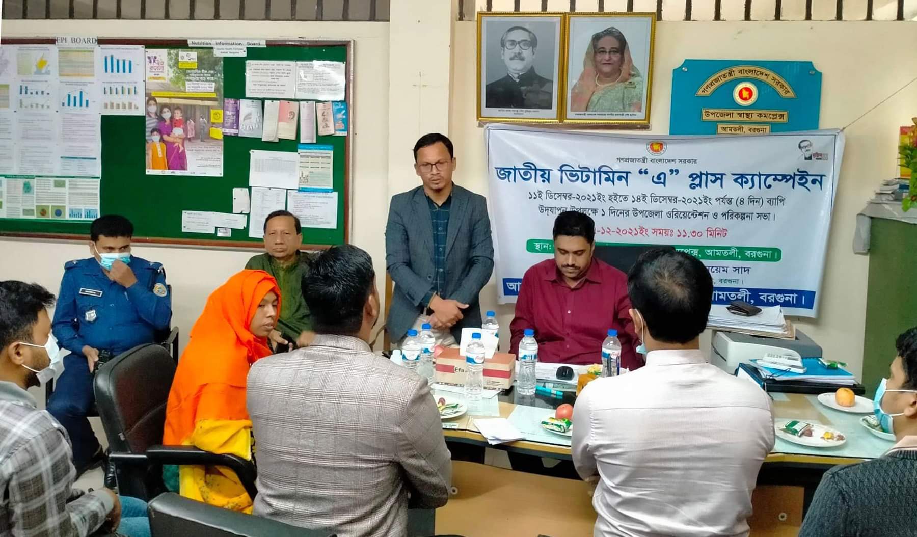 বরগুনার আমতলীতে ভিটামিন ‘এ’ প্লাস ক্যাম্পেইন উপলক্ষে উপজেলা স্বাস্থ্য কমপ্লেক্সের আয়োজনে ওরিয়েন্টেশন ও পরিকল্পনা সভা অনুষ্ঠিত হয়েছে। দু’উপজেলায় ৫ থেকে ১১ মাস এবং ১২ থেকে ৫৯ মাস বয়সী ৩৬ হাজার ২০০ শিশুকে খাওয়ানো হবে নীল ও লাল রংয়ের ভিটামিন ‘এ’ প্লাস ক্যাপসুল।