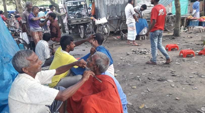 নওগাঁর ধামইরহাটে বাপ-দাদার পেশাকে আজও আকড়ে ধরে রেখেছেন নর সুন্দররা। সব শ্রেণী-পেশার মানুষ অন্যের কাছে নিজেকে সুন্দর রুপে উপস্থাপন করতে ব্যস্ত। মানুষকে চুল-দাড়ি কেটে দেখতে সুন্দর করা যাদের কাজ তারাই নর সুন্দর। আঞ্চলিক ভাষায় তাদের বলা হয় নাপিত। আধুনিকতার ছোঁয়ায় হারিয়ে যেতে বসেছে হাটে-বাজারে পিড়িতে বসা এই সেলুনগুলো। বর্তমান সময়ে বড় বড় মার্কেটে ঘর সাজিয়ে এমন কি শিতাতাপ নিয়ণ্ত্রীত ঘরে বসে নর সুন্দররা মানুষের চুল কাটার কাজ করছেন। মানুষের সৌন্দর্যের অন্যতম উপকরণ চুল এই চুল নিয়ে যুগে যুগে মানুষের ভাবনার অন্তঃ নেই। সেই কারণে নাপিতদের কদর ও প্রয়োজনীয়তা আজও ফুরিয়ে যায়নি। এক সময় হাট-বাজারে পিড়িতে বসে চুল দাড়ি কাটত মানুষ। কিন্তুু কালের বিবর্তনে আধুনিকতার ছোঁয়ায় মানুষের চুল দাড়ি কাটার আদিপরিচিত দৃশ্য এখন অনেকটা কমে গেলেও ধামইরহাট উপজেলার বিভিন্ন হাট-বাজারে চোখে পড়ে সেই দৃশ্য। তবে আধুনিক সভ্যতার ক্রমবিবর্তনের ফলে আজ আমাদের দৈনন্দিন জীবনের গতি ধারায় এসেছে পরিবর্তন। লেগেছে নতুনত্বের ছোঁয়া। হারিয়ে যেতে বসেছে হাটে-বাজারে বসা হাতুড়ে সেলুন। উপজেলার তালঝারি গ্রামের মৃত কিনু শিল এর ছেলে শ্রী অনিল চন্দ্র শিল বলেন, বাংলা ১৪৫৬ সন থেকে দু পয়সা সেভ ও তিন পয়সা চুল কাটা শুরু করেছি। বর্তমান সেভ ১৫ টাকা ও চুল কাটা ৩০ টাকা। এটা আমার বাপ-দাদারা করে গেছে তাই এ পেশা আমি ধরে রেখেছি বাপের ঐতিহ্যকে ধরে রাখার জন্য। আধুনিক ছোঁয়া না লাগলেও বাপ-দাদার আমলের সেই স্মৃতি ধরে রেখেছেন ধামইরহাটের কয়েক জন নরসুন্দর।