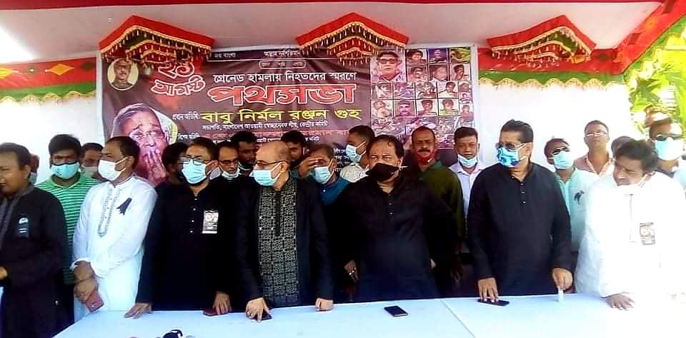বাংলাদেশ আওয়ামী স্বেচ্ছাসেবক লীগের সভাপতি নির্মল রঞ্জন গুহ বলেছেন,২০০৪ সালের ২১ আগস্ট ভয়াবহ গ্রেনেড হামলার সাথে জড়িত বিএনপির চেয়ারপার্সন বেগম খালেদা জিয়ার পুত্র তারেক রহমানকে দেশে এনে বিচারের কাঠগড়ায় দাঁড় করাতে হবে। তাহলেই যারা গ্রেনেড হামলায় নিহত হয়েছেন তাদের আত্মা শান্তি পাবে। বাংলাদেশ আওয়ামী স্বেচ্ছাসেবক লীগের সভাপতি নির্মল রঞ্জন গুহ চাঁদপুরের মতলব দক্ষিণে উপজেলা স্বেচ্ছাসেবক লীগের আয়োজনে মতলব সেতুর দক্ষিণ পাড়ে আয়োজিত পথসভায় প্রধান অতিথি হিসেবে এ কথাগুলো বলেন। তিনি আরো বলেন, বাংলার মাটিতে বিএনপি-জামায়াতের কোন ঠাই নেই। বঙ্গবন্ধুর কন্যা প্রধানমন্ত্রী শেখ হাসিনাকে ওই দিন তারা রাজধানীর বঙ্গবন্ধু এভিনিউতে আওয়ামী লীগের সন্ত্রাসীবিরোধী সমাবেশে গ্রেনেড হামলা করে হত্যা করতে চেয়েছিল। আমরা এ হত্যাকান্ডের সাথে জড়িতদের বিচার চাই। ঐ গ্রেনেড হামলায় স্বেচ্ছাসেবক লীগ নেতা হাইমচরের আঃ কুদ্দুছও নিহত হয়েছেন। ২১ আগস্ট বেলা ২ টায় জেলা স্বেচ্ছাসেবক লীগের সভাপতি অ্যাড. হেলাল হোসেন এর সভাপতিত্বে ও সাধারণ সম্পাদক ফেরদৌস মোর্শেদ জুয়েল এর পরিচালনায় বিশেষ অতিথি হিসেবে বক্তব্য রাখেন কেন্দ্রীয় স্বেচ্ছাসেবক লীগের প্রতিষ্ঠাতা সদস্য বাবু নির্মল গোস্বামী, কেন্দ্রীয় স্বেচ্ছাসেবক লীগের সাধারণ সম্পাদক এ কে এম আফজালুর রহমান বাবু, মতলব দক্ষিণ উপজেলা পরিষদের চেয়ারম্যান ও উপজেলা আওয়ামী লীগের সাধারণ সম্পাদক বি এইচ এম কবির আহমেদ। এছাড়াও বক্তব্য রাখেন- পৌর যুবলীগের সভাপতি সোহাগ সরকার, উপজেলা যুবলীগের যুগ্মা আহ্বায়ক দেওয়ান মো: পারভেজ, জেলা স্বেচ্ছাসেবক লীগের সাংগঠনিক সম্পাদক ও কাউন্সিলর পিন্টু সাহা, গণযোগাযোগ ও সাংবাদিকতা বিষয়ক সম্পাদক ও উপজেলা স্বেচ্ছাসেবক লীগের সিনিয়র যুগ্ম আহ্বায়ক শ্যামল চন্দ্র দাস, আওয়ামী লীগ নেতা লোকমান হোসেন বাবুল, স্বেচ্ছাসেবক লীগ নেতা মোঃ ফেরদাউস আলম।