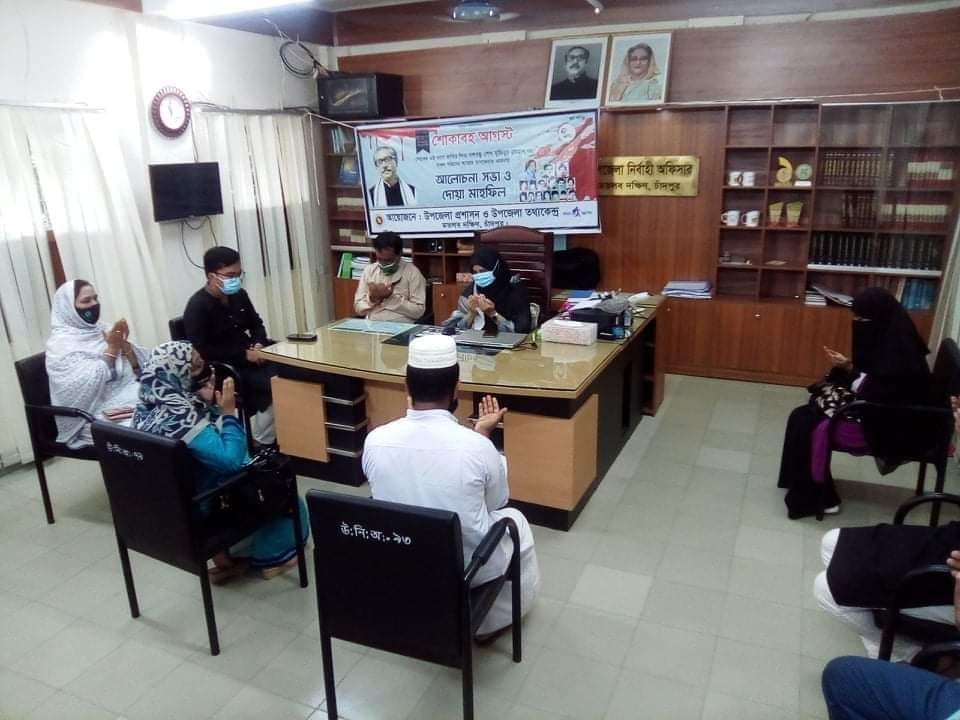 চাঁদপুরের মতলব দক্ষিণ উপজেলা প্রশাসন ও তথ্য সেবা অফিসের আয়োজনে জাতির পিতা বঙ্গবন্ধু শেখ মুজিবুর রহমানের শাহাদাত বার্ষিকী উপলক্ষে আলোচনা ও মিলাদ অনুষ্ঠিত হয়। ১৫ আগস্ট উপজেলা নির্বাহী অফিসারের কার্যালয়ে বেলা ১২টায় আলোচনা ও মিলাদ মাহফিলে সভাপতিত্ব করেন উপজেলা নির্বাহী কর্মকর্তা ফাহমিদা হক। এ সময় প্রধান অতিথি হিসেবে উপস্থিত ছিলেন উপজেলা পরিষদের চেয়ারম্যান বিএইচএম কবির আহমেদ। উপস্থিত ছিলেন- সহকারী কমিশনার (ভূমি) সেটু কুমার বড়–য়া, উপজেলা মহিলা ভাইস চেয়ারম্যান ফেরদৌসী বেগম রুনু, উপজেলা আওয়ামী লীগ নেতা ফারুক বিন জামান, এম.এ আজিজ বাবুল, মোফাজ্জল হোসেন, উপজেলা সমাজসেবক অফিসার মো: রুহুল আমিন, উপজেলা শিক্ষা অফিসার নাজমুন নাহার, রোটারী ক্লাব অব মতলবের প্রেসিডেন্ট রোটা: শ্যামল চন্দ্র দাস, শ্রমিক নেতা জালাল উদ্দিন খান। অনুষ্ঠানটি পরিচালনা করেন তথ্য সেবা কর্মকর্তা মোসা: তাসলিমা খাতুন।