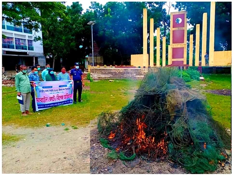 চাঁদপুর জেলার মতলব দক্ষিণে জাতীয় মৎস্য সপ্তাহ-২০২১ উপলক্ষে ৫ম দিনে মতলব দক্ষিণ উপজেলা প্রশাসন ও মৎস্য অধিদপ্তরের উদ্যোগে বিশেষ অভিযান চালিয়ে ১০০ টি নিষিদ্ধ চায়না রিং জাল জব্দ করা হয়েছে।